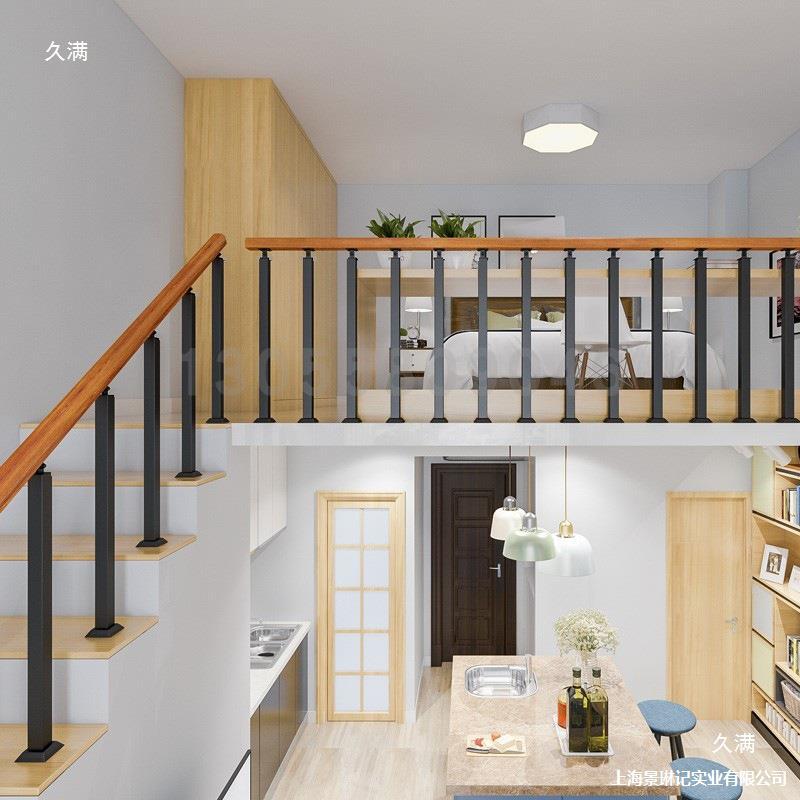 로프트 계단 기둥 철 간단한 현대 실내 창조적 인 난간 솔리드 우드 핸드 레일 플랫폼 바 가드