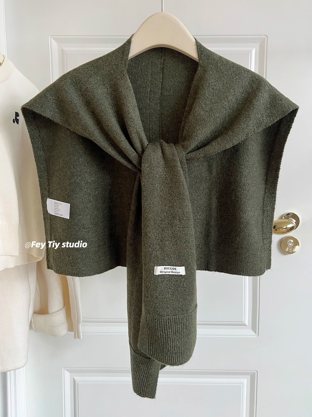 업그레이드 된 양모 목도리 여성용 단색 니트 외부 크로스 웨어 에어컨 룸 목 보호 스카프 봄과 가을 한국 스타일스토어 가기
