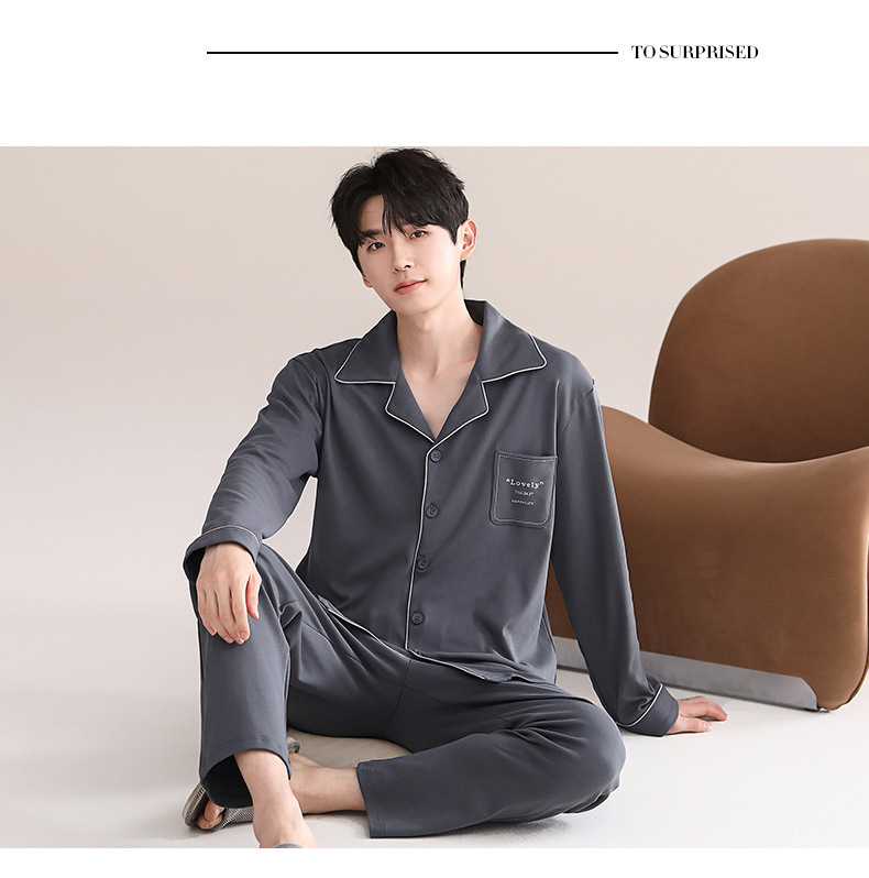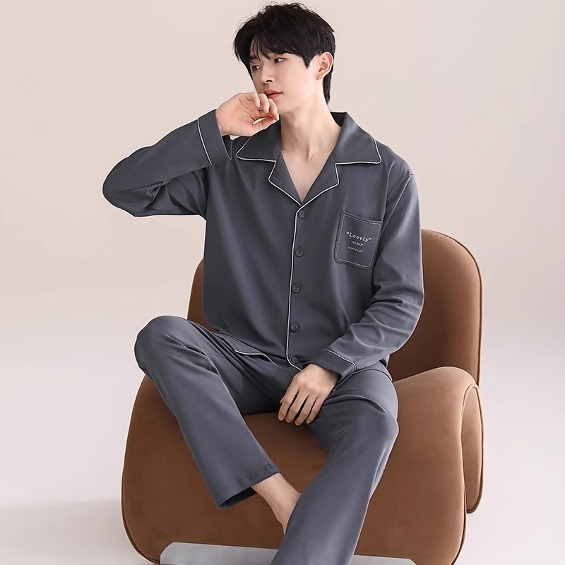 잠옷 남자의 봄과 가을면 긴 소매 홈 옷 남자의 가을 얇은 십대들은 캐주얼 세트 입을 수 있습니다스토어 가기