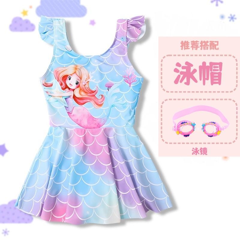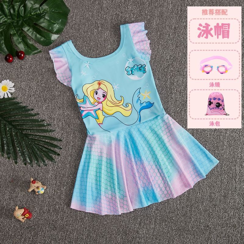• 741#파란색 수영 스커트 + 수영 모자 + 수영 고글