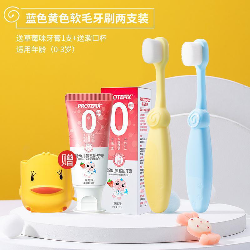 • [0-3세] 노란색 + 파란색 부드러운 털 2팩 + 무료 딸기맛 치약 1개