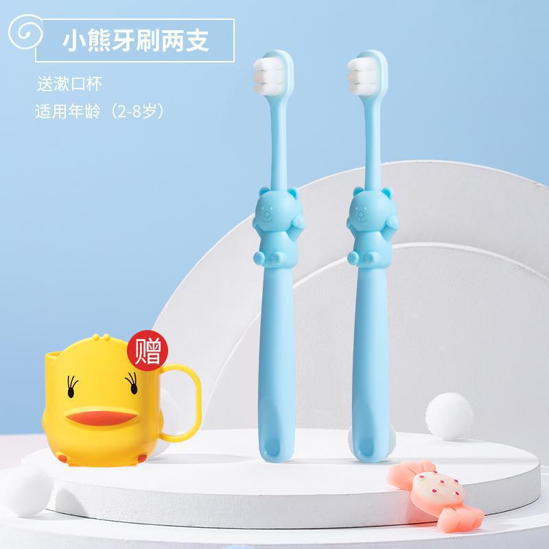• [3-8세] 큰 파란색 어린이 칫솔 2개 + 작은 노란색 오리 구강 세정제 컵
