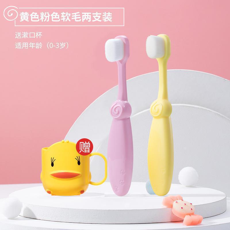 • [0-3세] 핑크 + 옐로우 소프트 퍼 2팩 + 무료 작은 노란 오리 구강청결제 컵