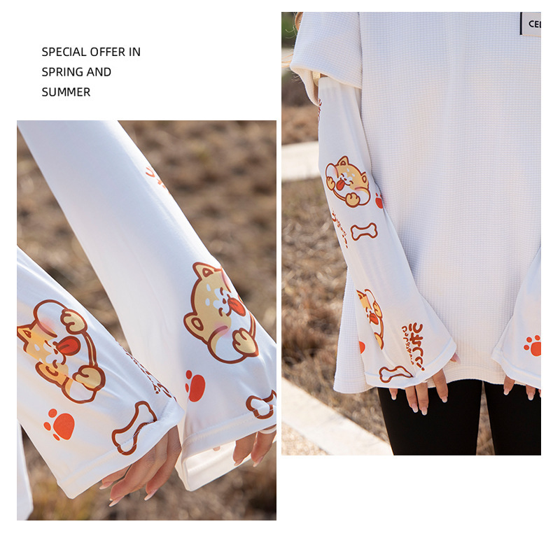 느슨한 뿔 소매 귀여운 여성의 여름 시원한 얼음 실크 태양 보호 얼음 소매 햇빛 통기성 야외 UV 보호
