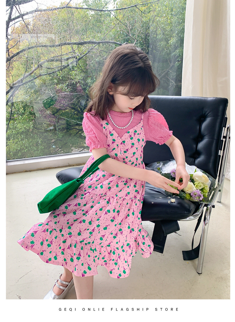 여성 아동복 유행 세트 서양식 2025 새로운 어린이 여름 원피스 어린 소녀의 인터넷 인기 여름 투피스 원피스 패션스토어 가기