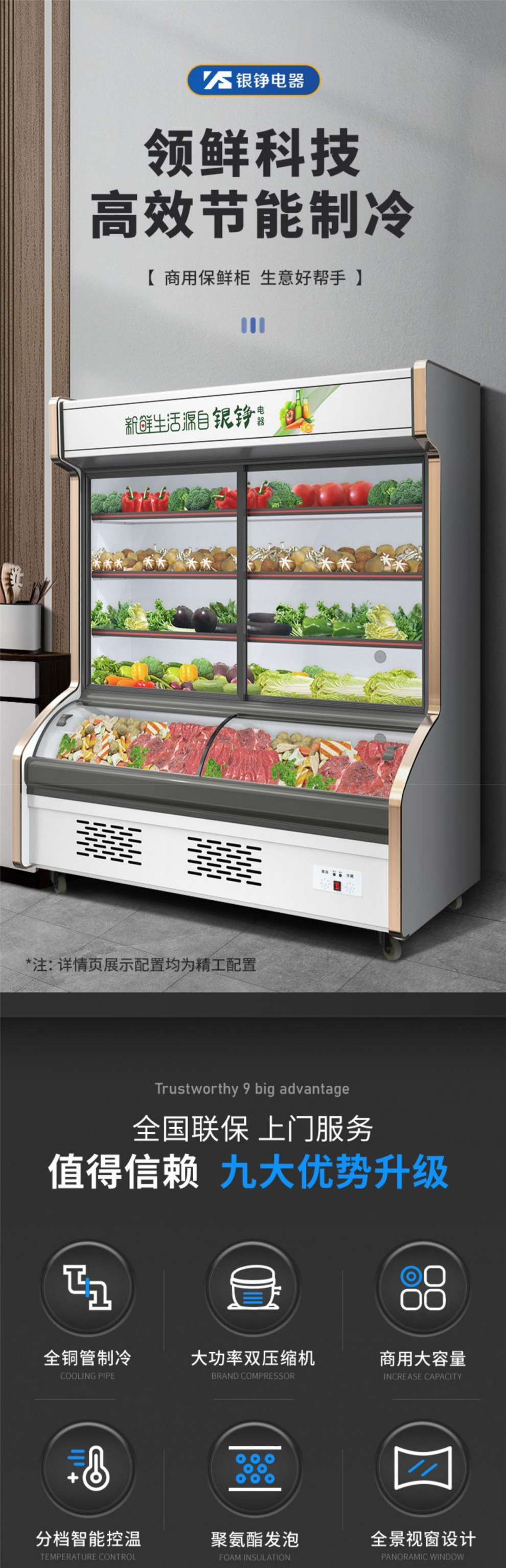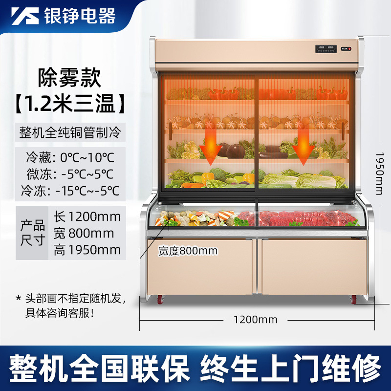 Yinzheng 상업용 디스플레이 캐비닛 냉장 신선한 보관 캐비닛 요리 바베큐 레스토랑 야채 3 온도 냉장고 다기능스토어 가기
