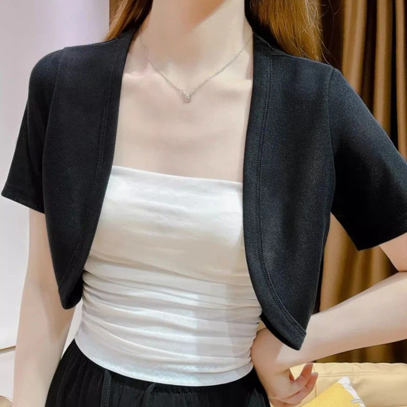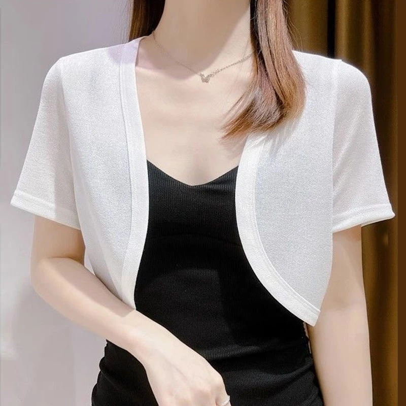 여름 여자 새 아이스 실크 올매치 쇼트 코트 안티 바디 슬림 작은 목도리 매칭 스커트 슬링 작은 카디건스토어 가기