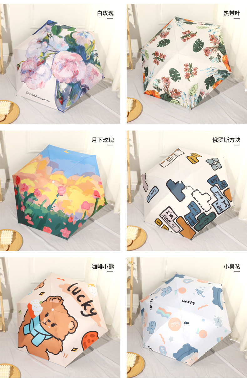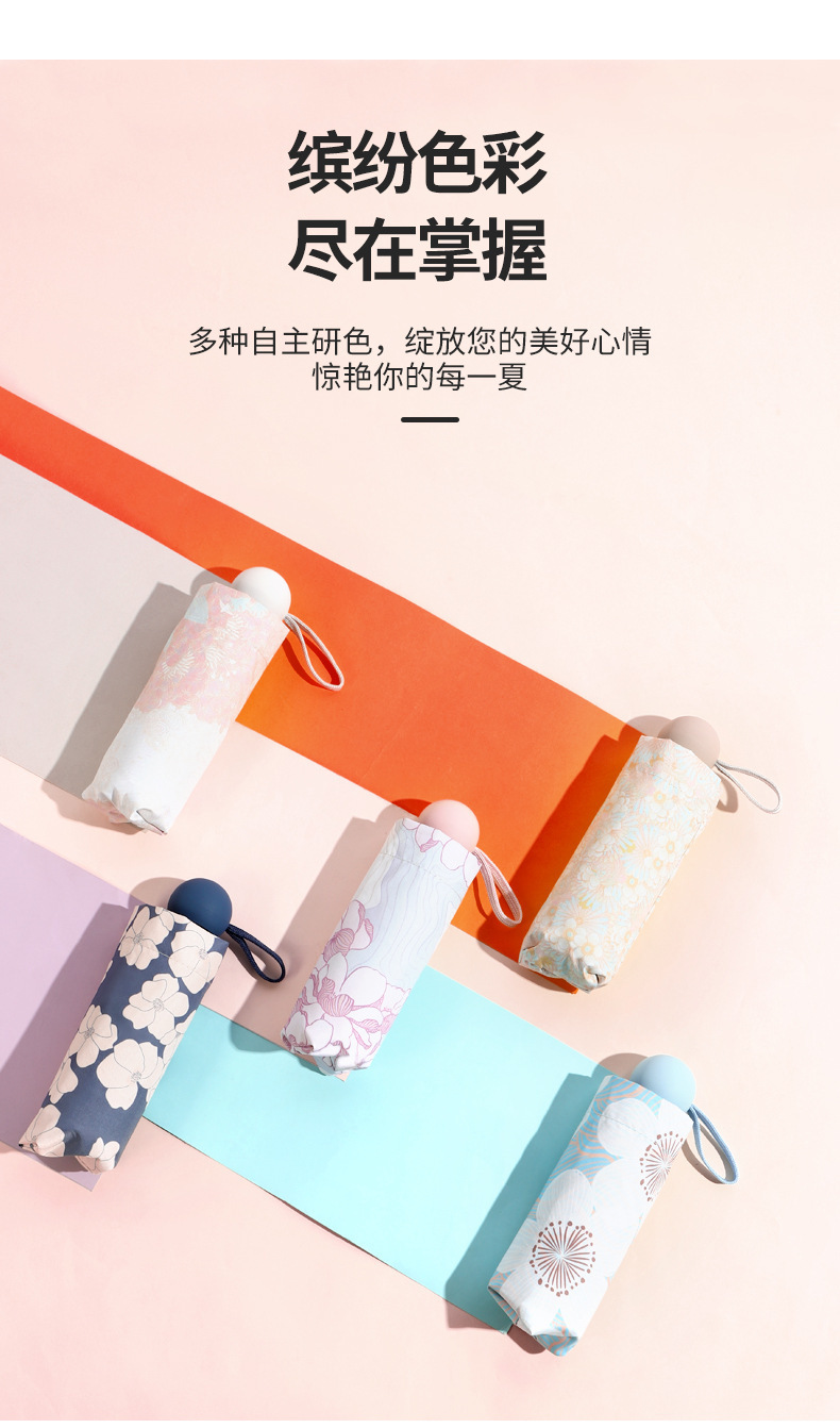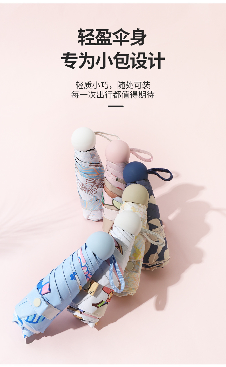 미니 포켓 귀여운 컬러 접는 우산 블랙 고무 안티-UV 선 스크린 햇살 우산 햇살 우산 햇살스토어 가기