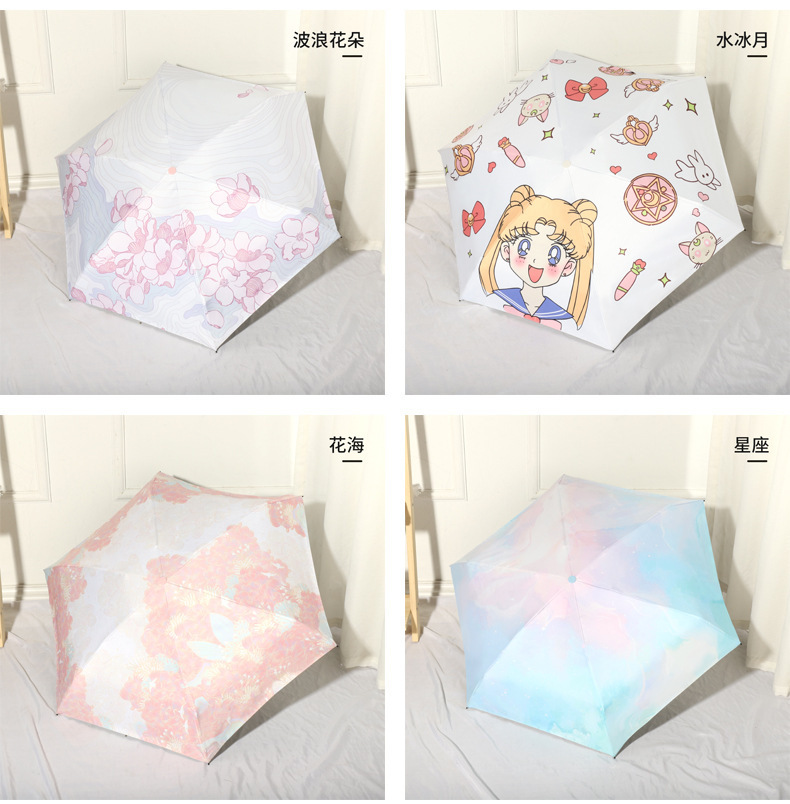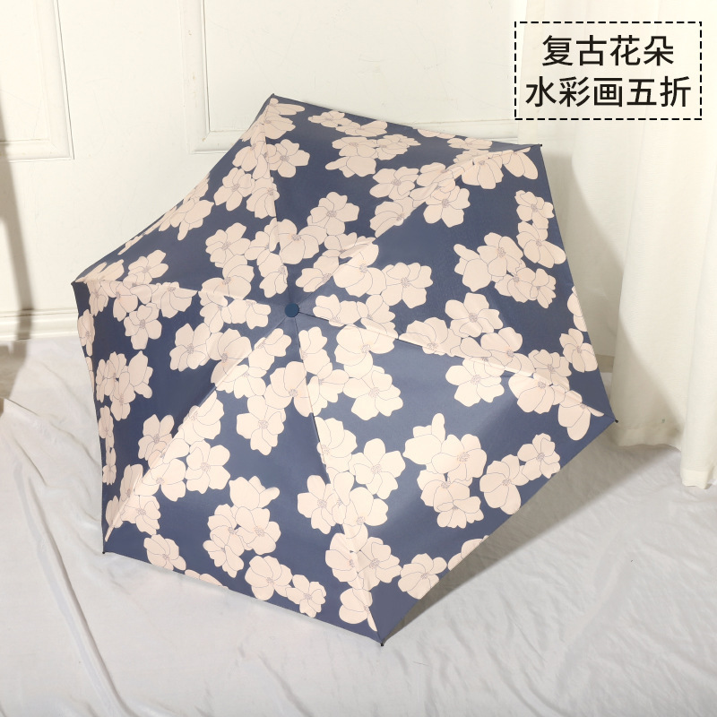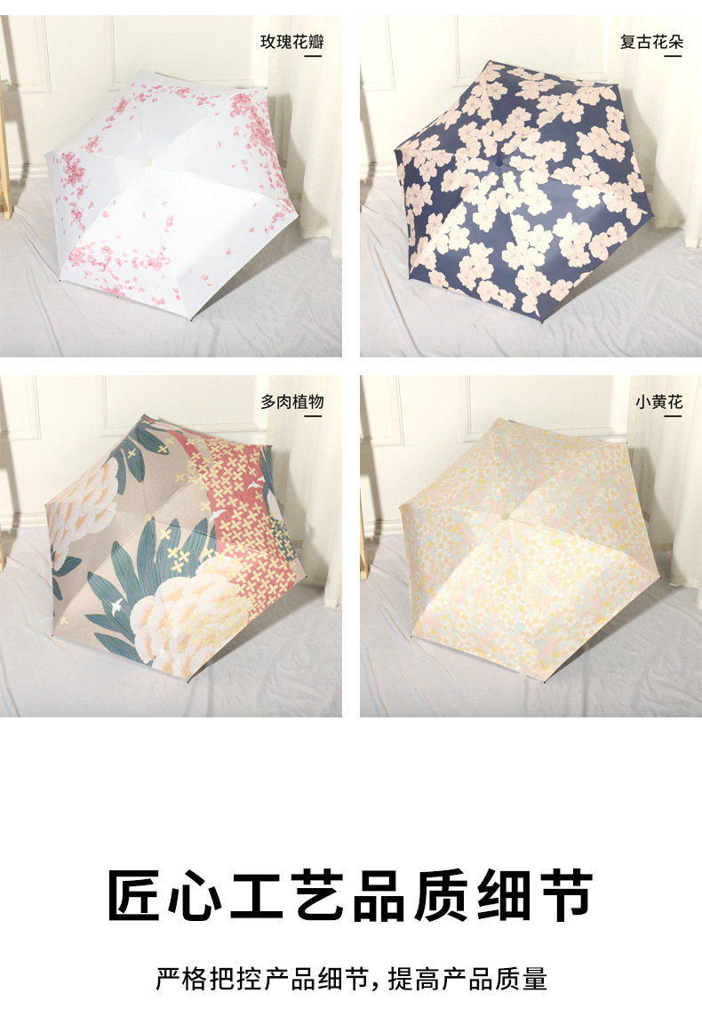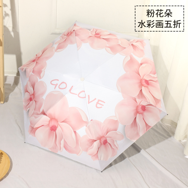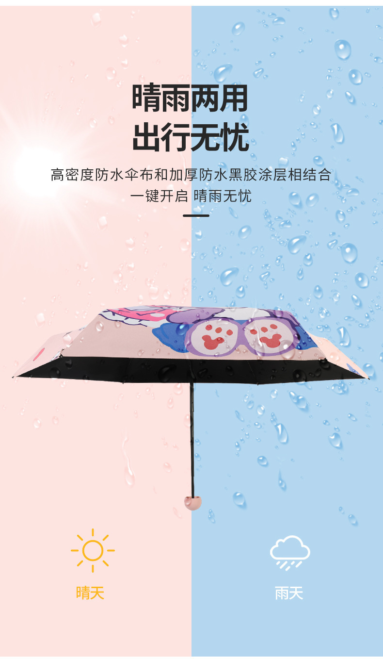 미니 포켓 귀여운 컬러 접는 우산 블랙 고무 안티-UV 선 스크린 햇살 우산 햇살 우산 햇살