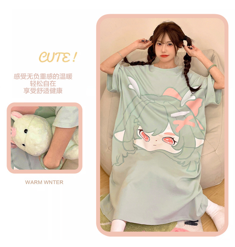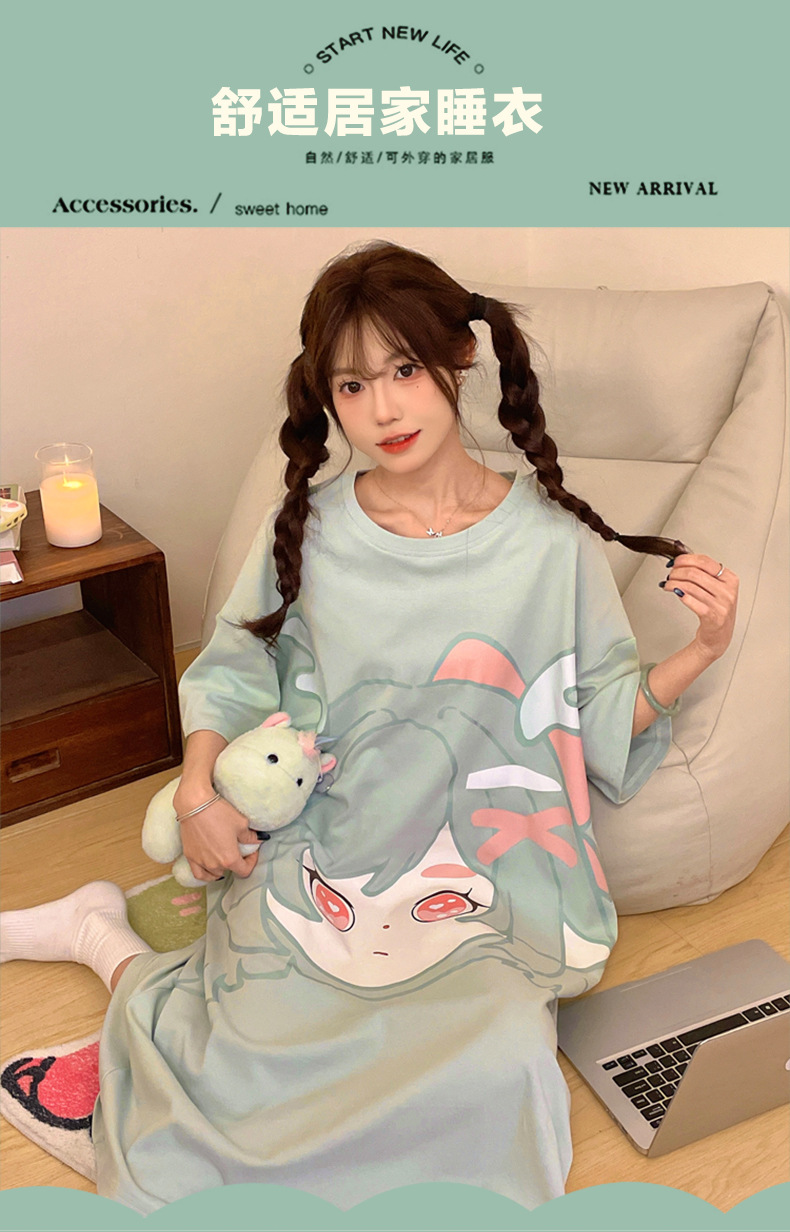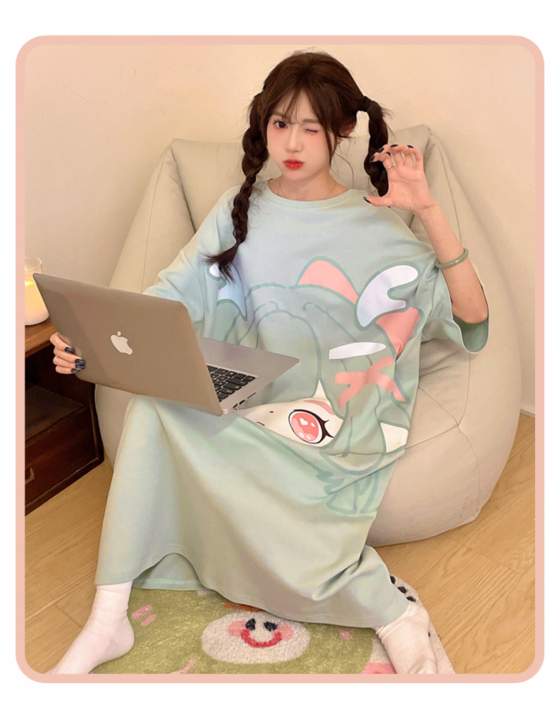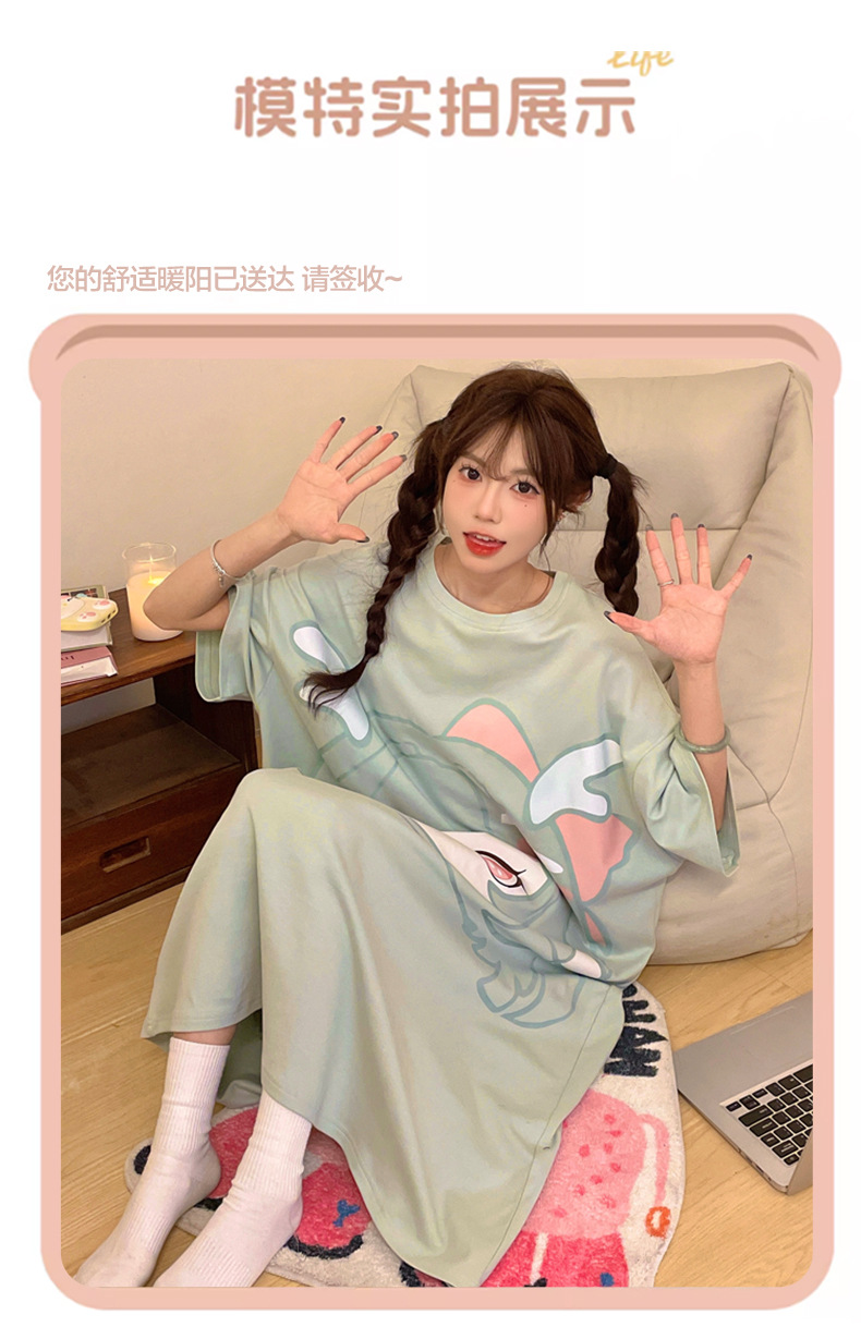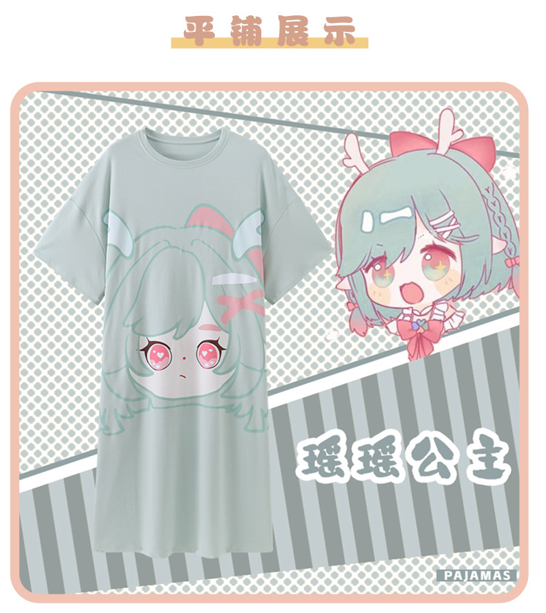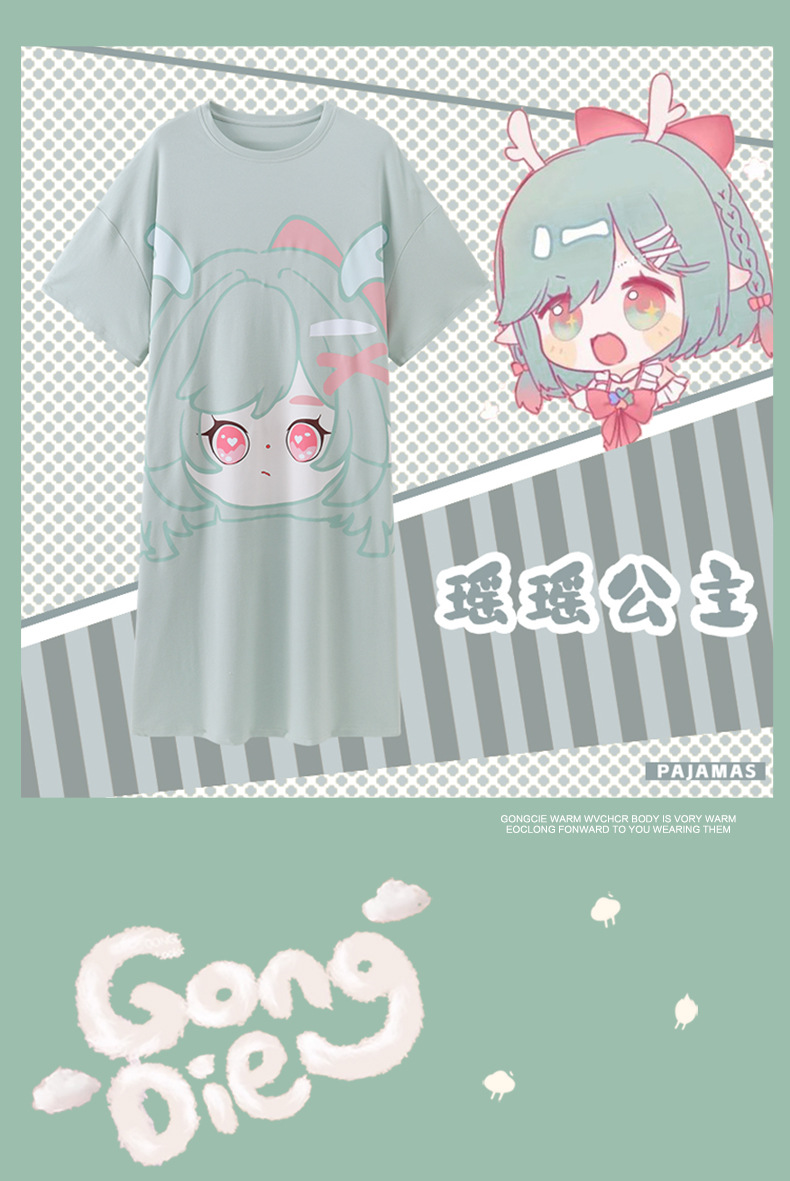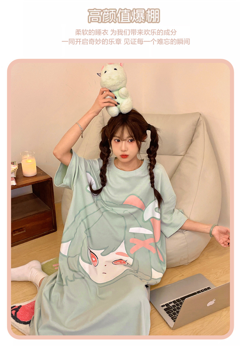 만화 야오야오 공주 나이트가운 긴 여성의 여름 반팔 코튼 얇은 귀여운 플러스 사이즈 파자마 외부 홈 의류스토어 가기