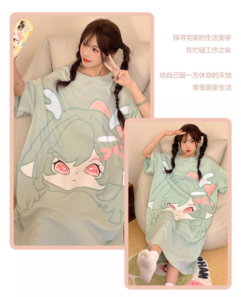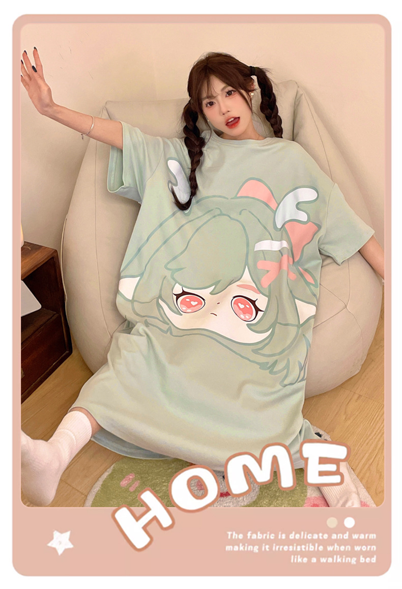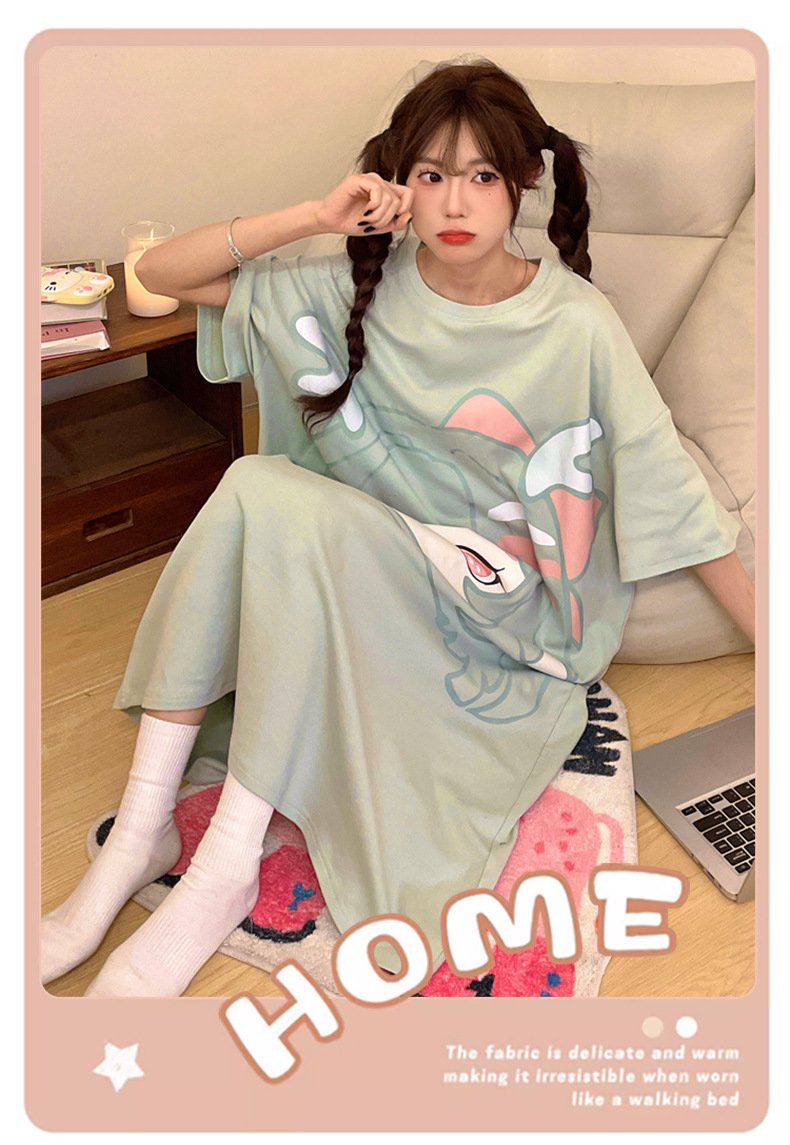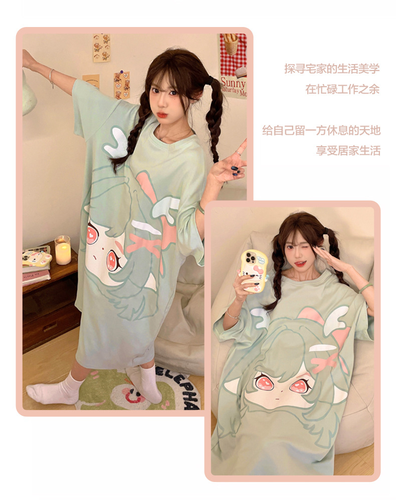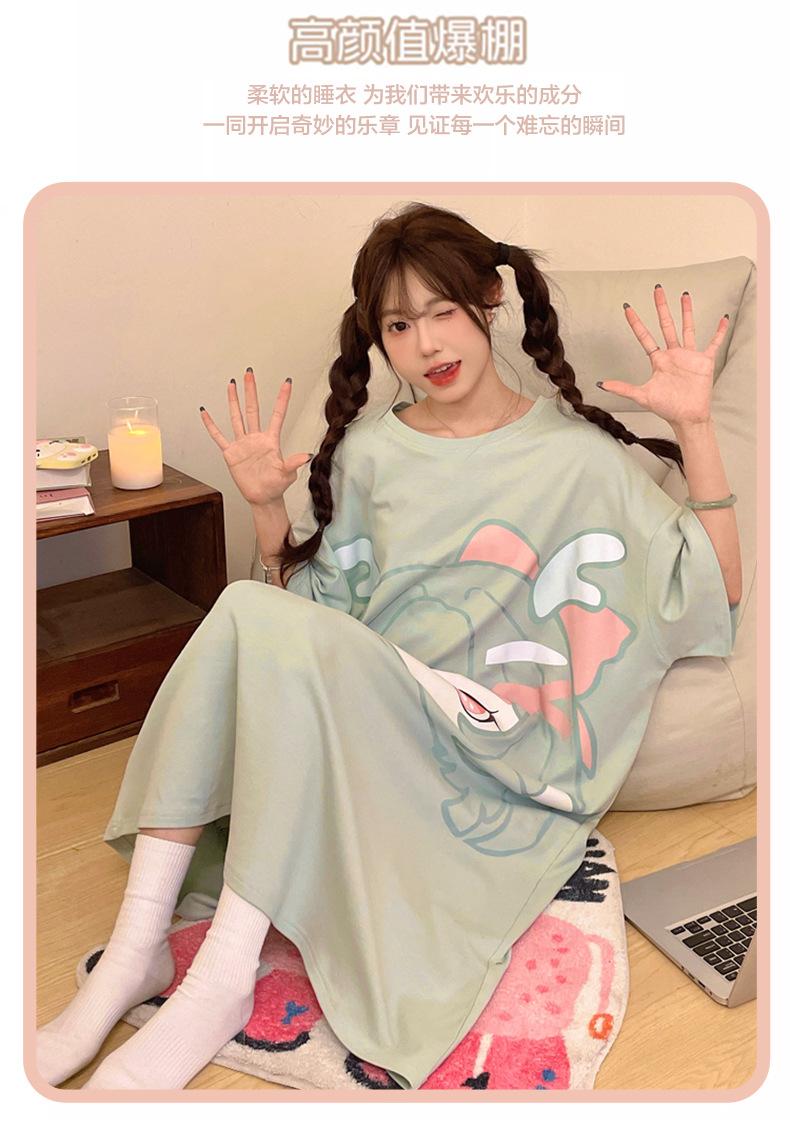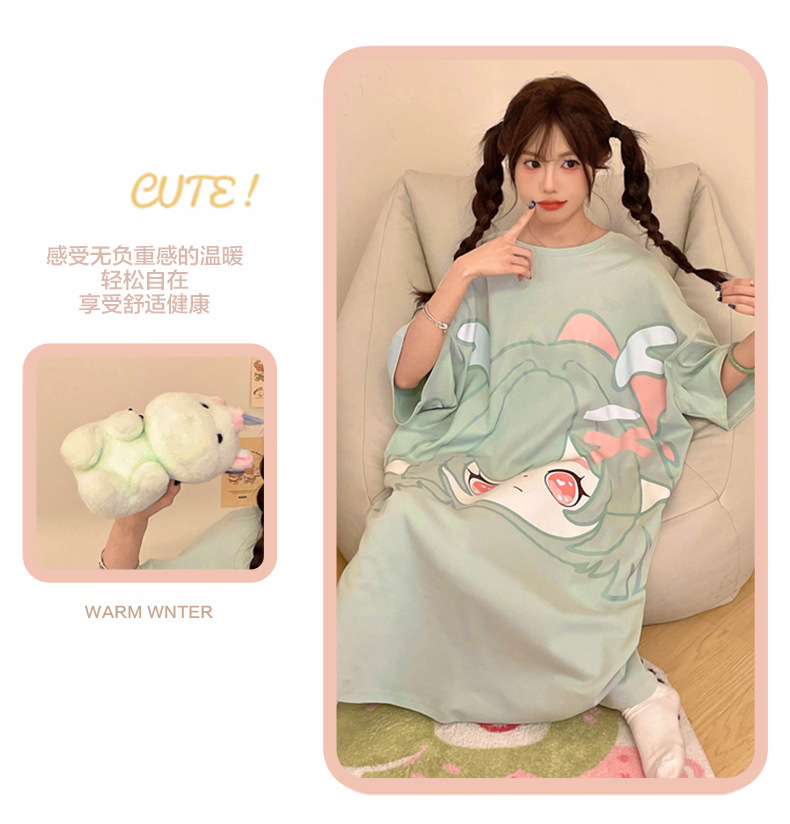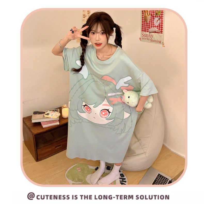 만화 야오야오 공주 나이트가운 긴 여성의 여름 반팔 코튼 얇은 귀여운 플러스 사이즈 파자마 외부 홈 의류스토어 가기