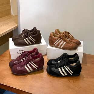 7cm 키높이 레트로 스타일의 작은 틸트 디자인 오리발끈 캐주얼 신발 여성용 부드러운 밑창 편안한 아가니 신발스토어 가기
