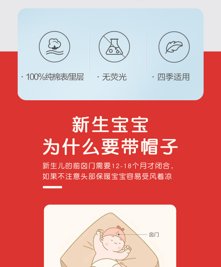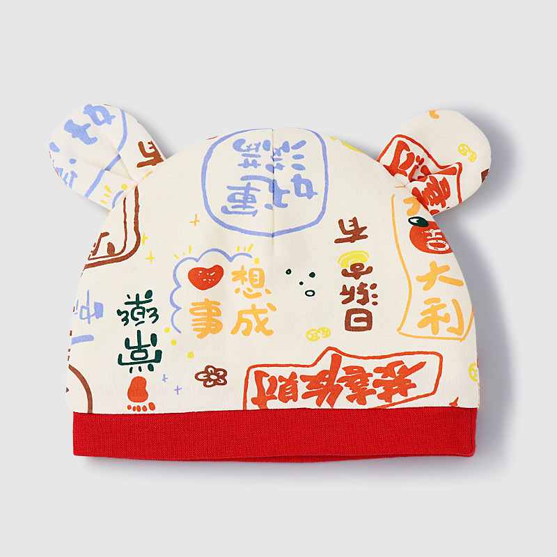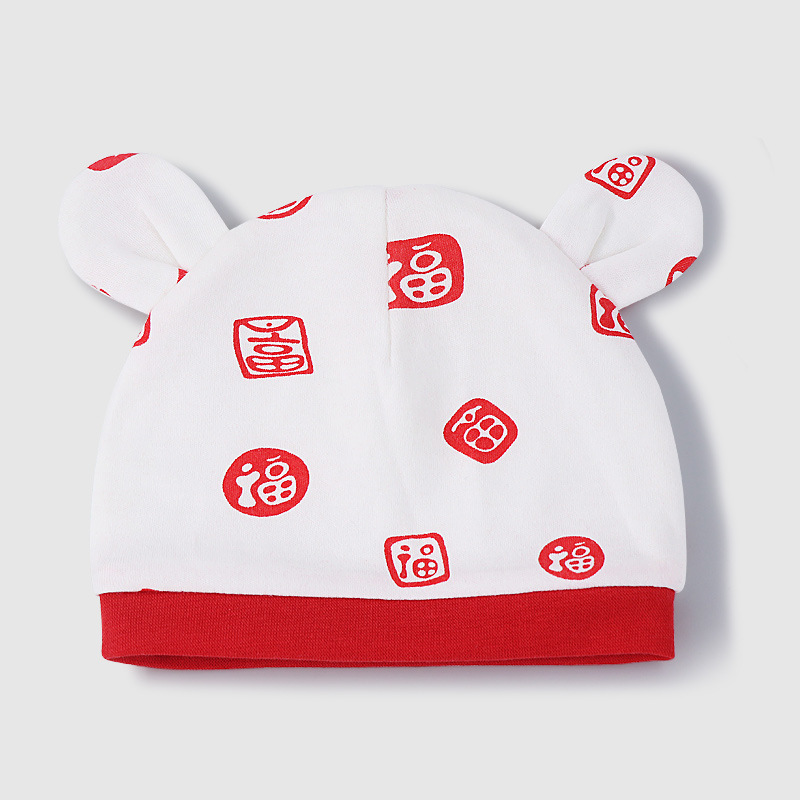 아기 모자 붉은 면 사계절 더블 레이어 아기 모자 따뜻한 신생아 태아 모자 신생아 모자 봄 가을과 겨울