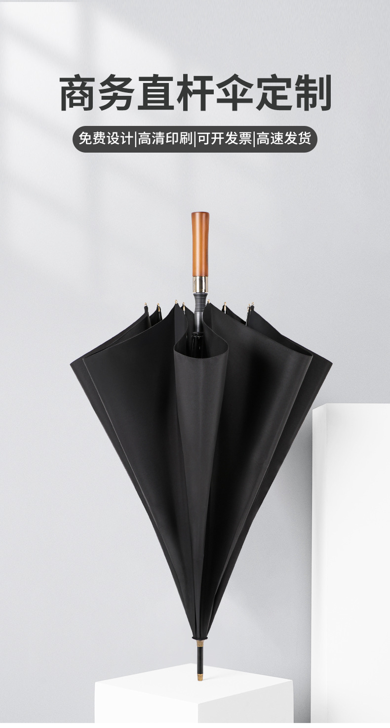 4S 상점 비즈니스 선물 우산 긴 손잡이 스트레이트 로드 자동 우산 광고 우산 인쇄 로고 나무 손잡이 골프 우산 도매