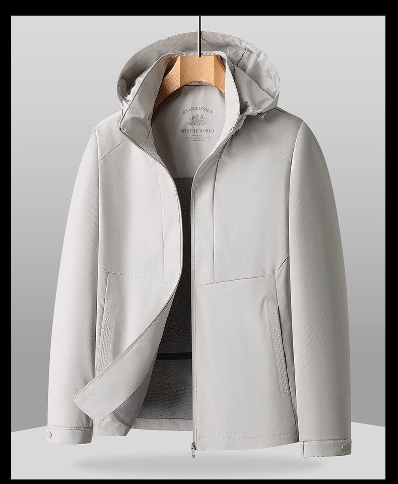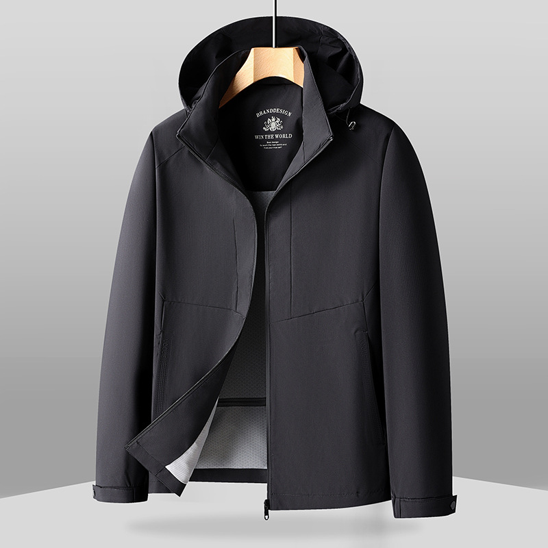 봄과 가을 남자 중년 아빠 블랙 올 매치 간단한 후드 방풍 따뜻한 편안한 여행 자켓