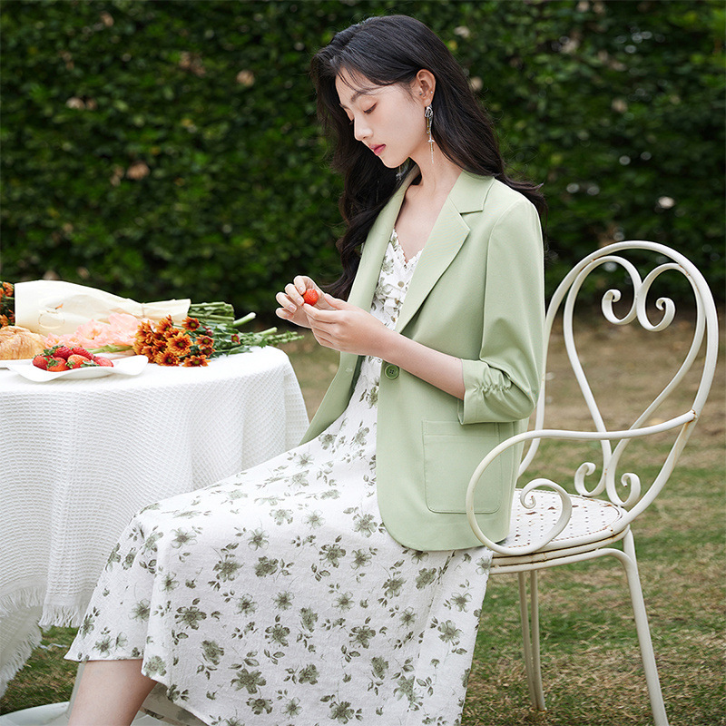 고급 세트 재킷 여자 2025 새로운 여름 얇은 재킷 서양식 외부 카디건 얇은 작은 세트 경량스토어 가기