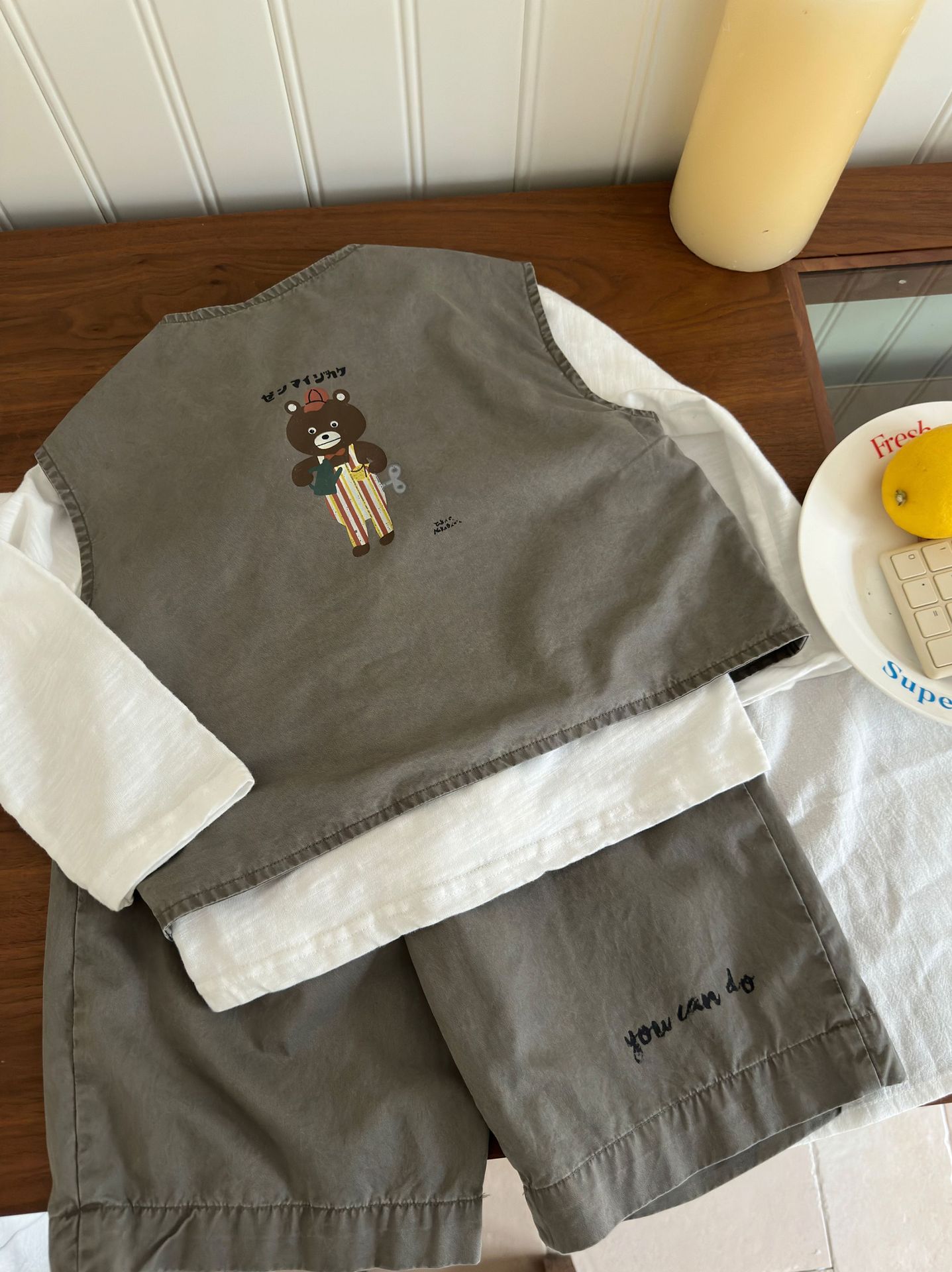 한국식 중소형 어린이 봄 캐주얼 세트 만화 인쇄 민소매 말 클립 편지 자수 긴 바지 투피스 세트