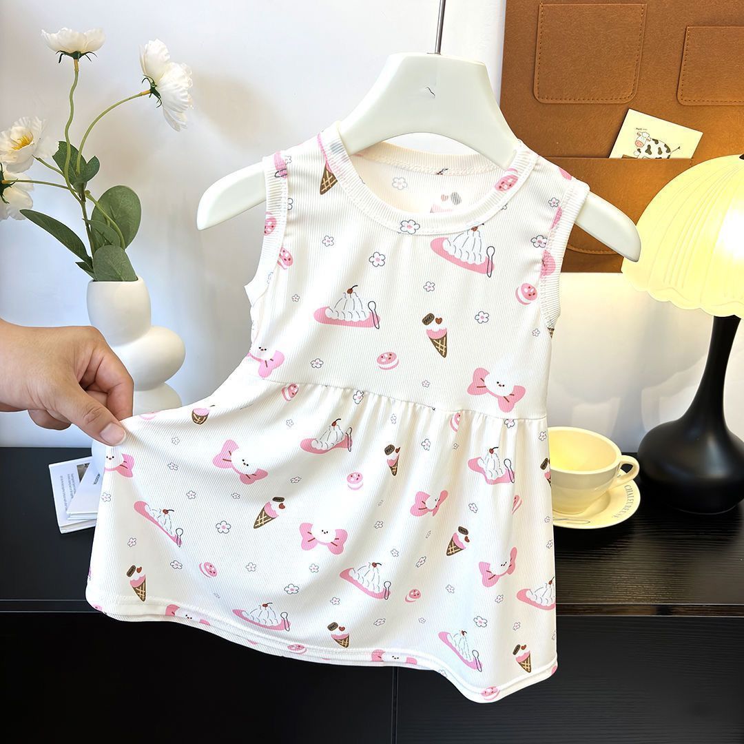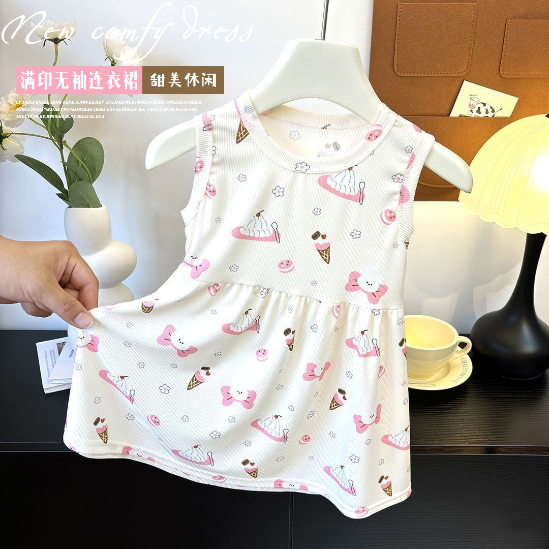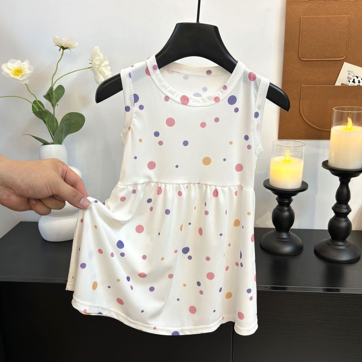 어린이 원피스 2025 여름 소녀의 꽃 아이스 실크 스커트 소녀의 캐주얼 소매 중간 길이 서양식 Vise 원피스스토어 가기