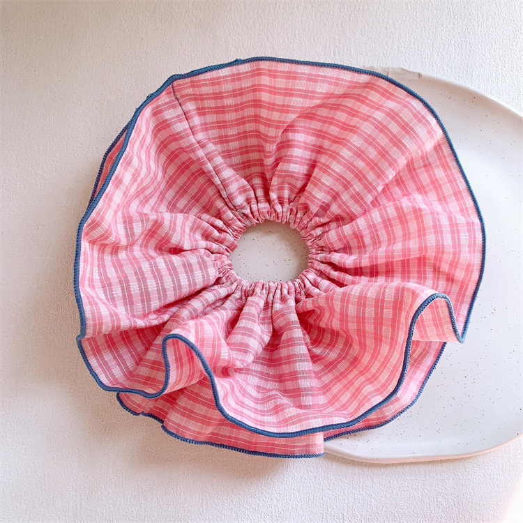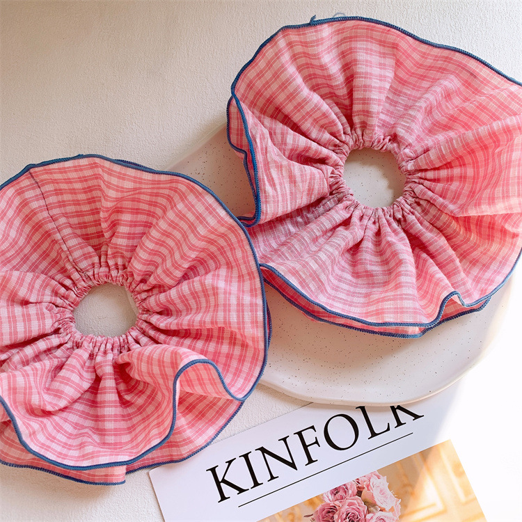 새로운 핑크 줄무늬 격자 무늬 더블 레이어 대형 직분 헤어 링 달콤한 소녀 하이 레벨 스타일 Payertail 고무 텐더 헤어 액세서리스토어 가기