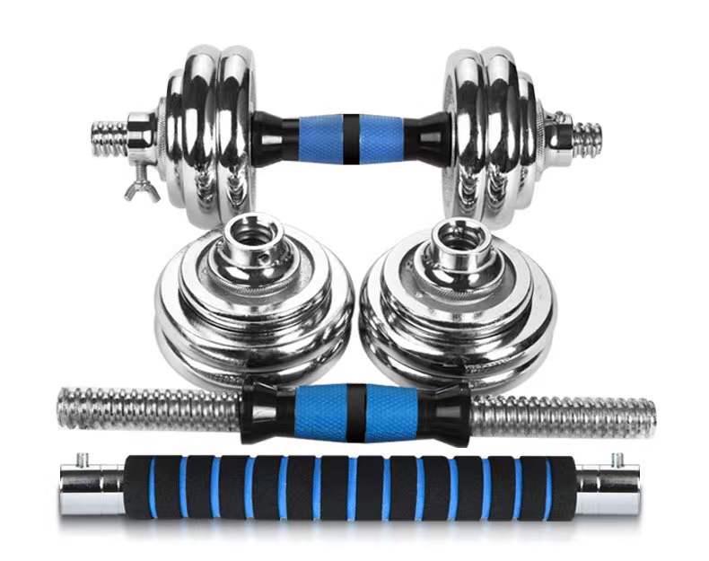 순수 철 전기 도금 덤벨 순수 스틸 남성 홈 피트니스 덤벨 선물 상자 20KG 투인원 덤벨 완벽한 세트