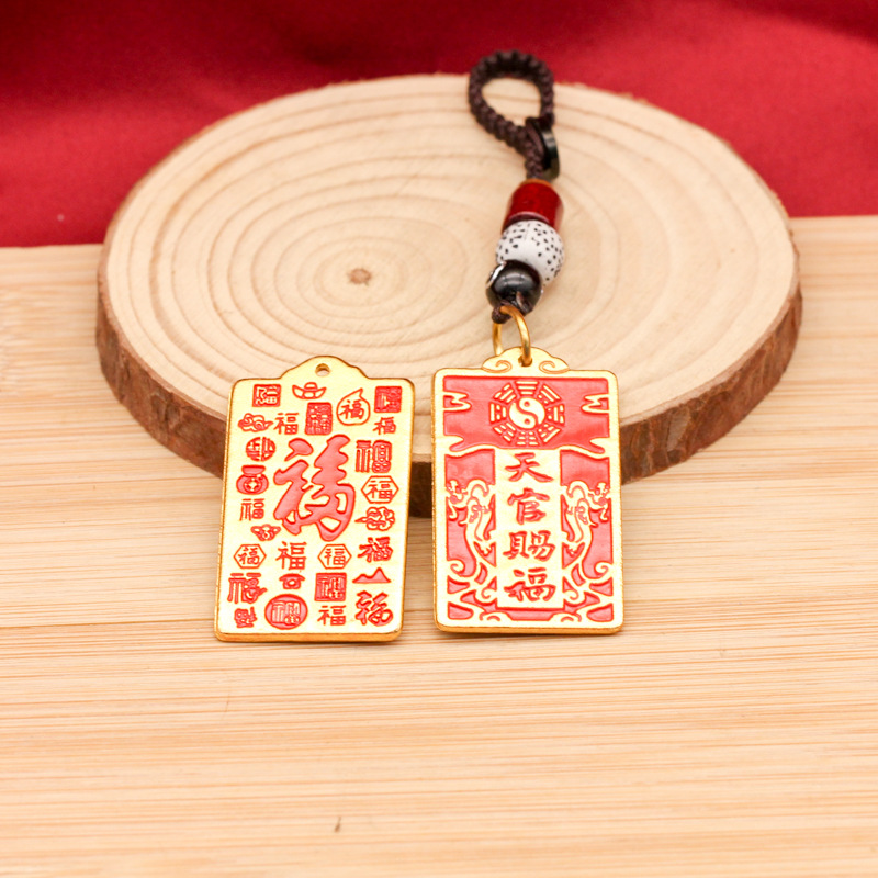 Tianguan 축복 카드 키 체인 수제 단어 Tianguan 축복 자동차 키 휴대 전화 펜던트 창조적 인 선물 도매스토어 가기
