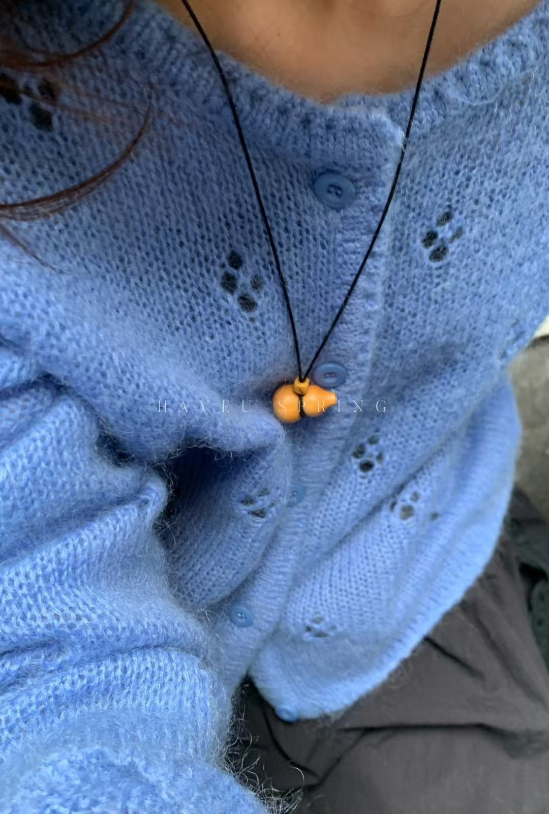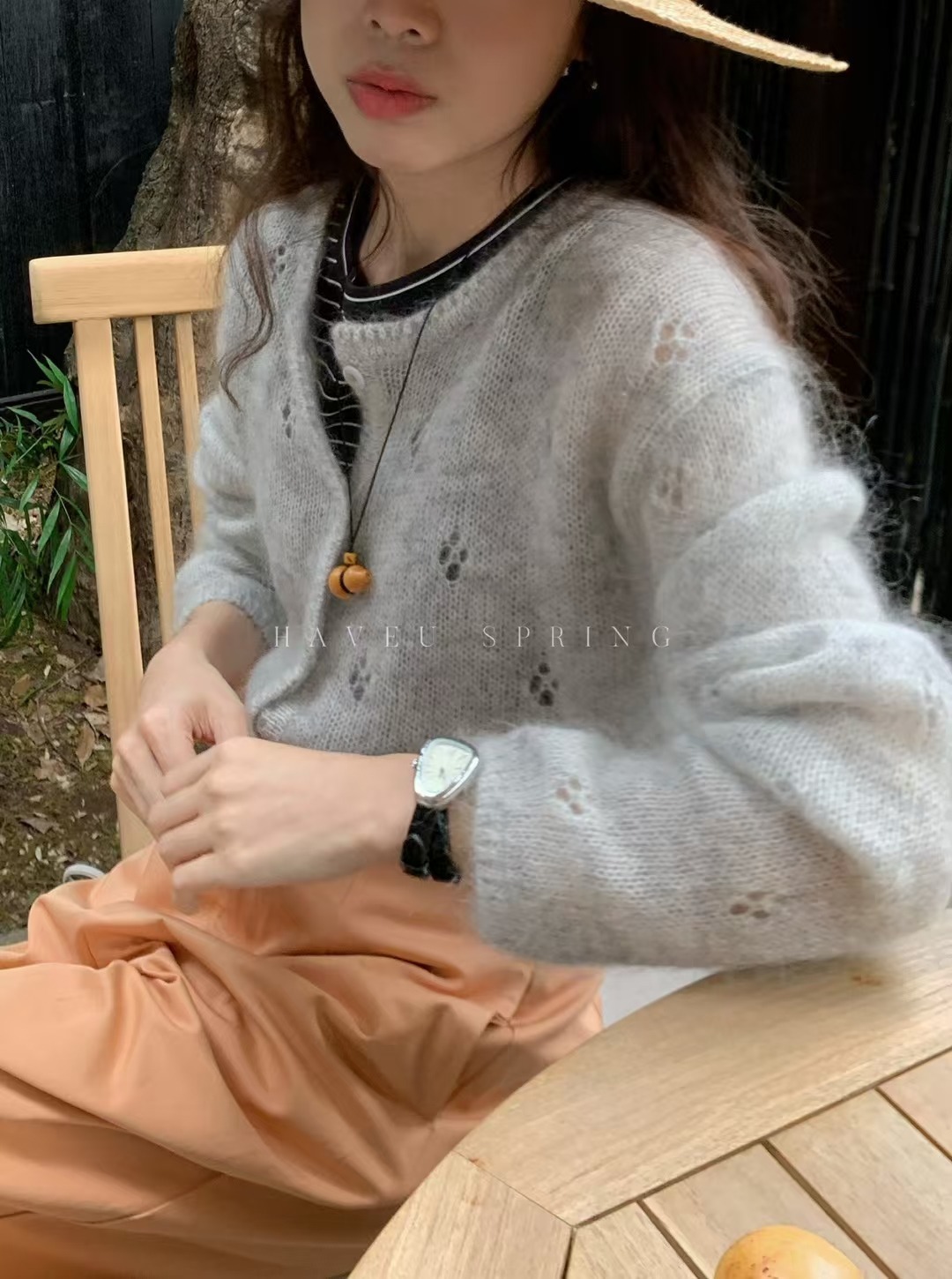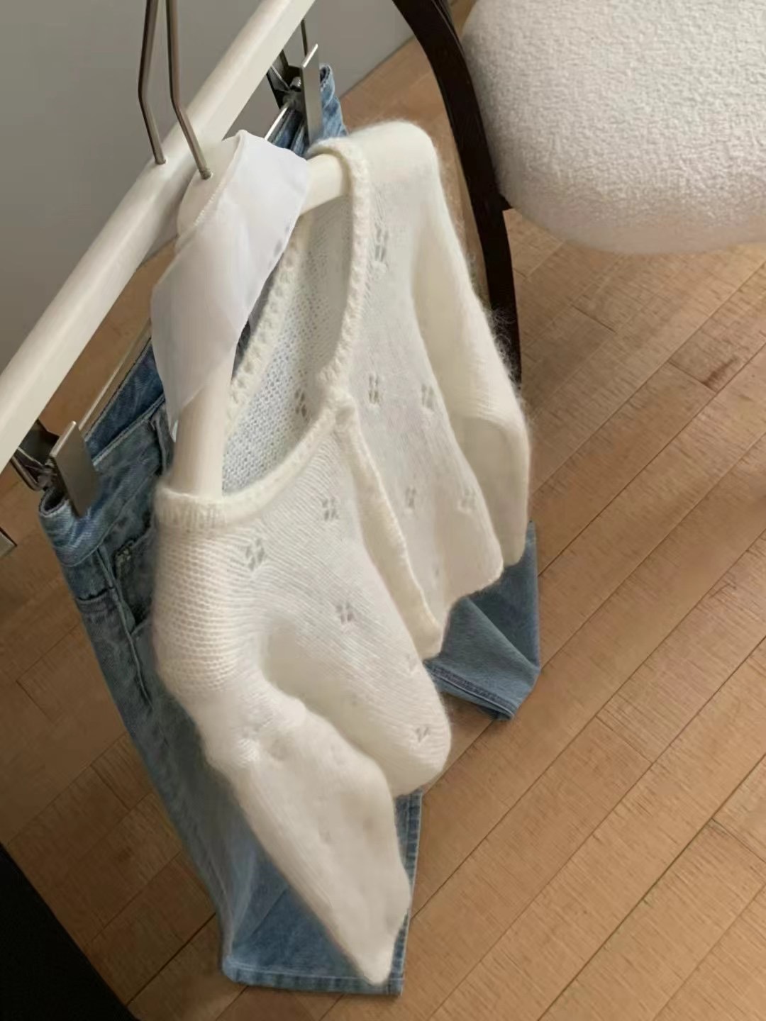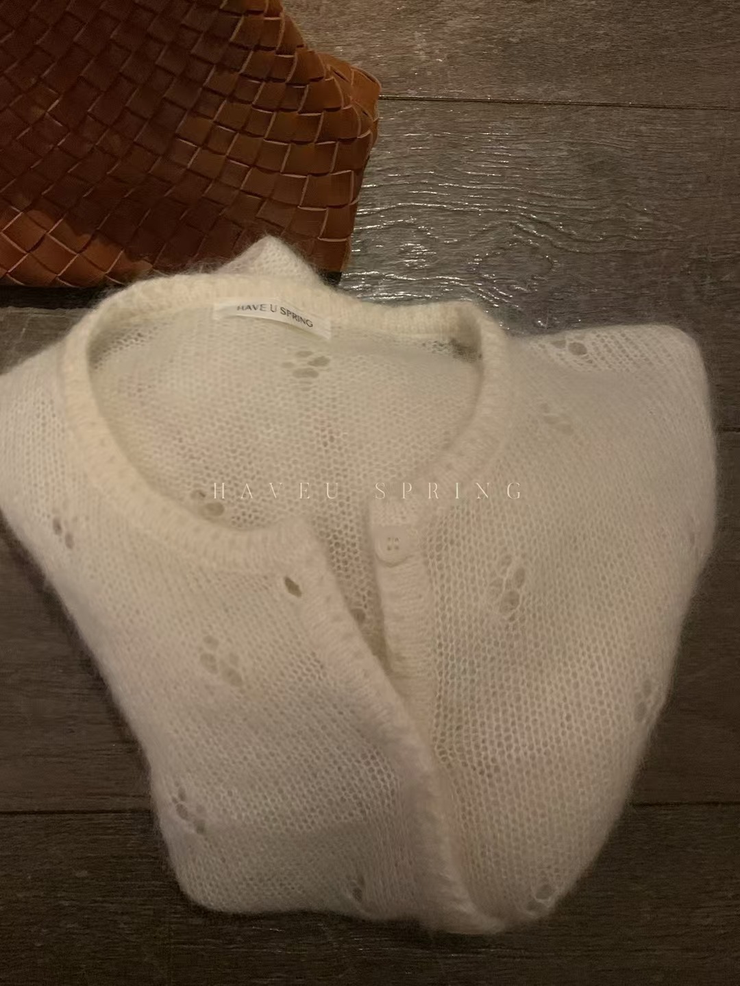 한국식 모헤어 라운드 넥 할로우 니트 카디건 여성의 봄 새로운 디자인 센스 아우터 쇼트 코트 얇은 탑스토어 가기