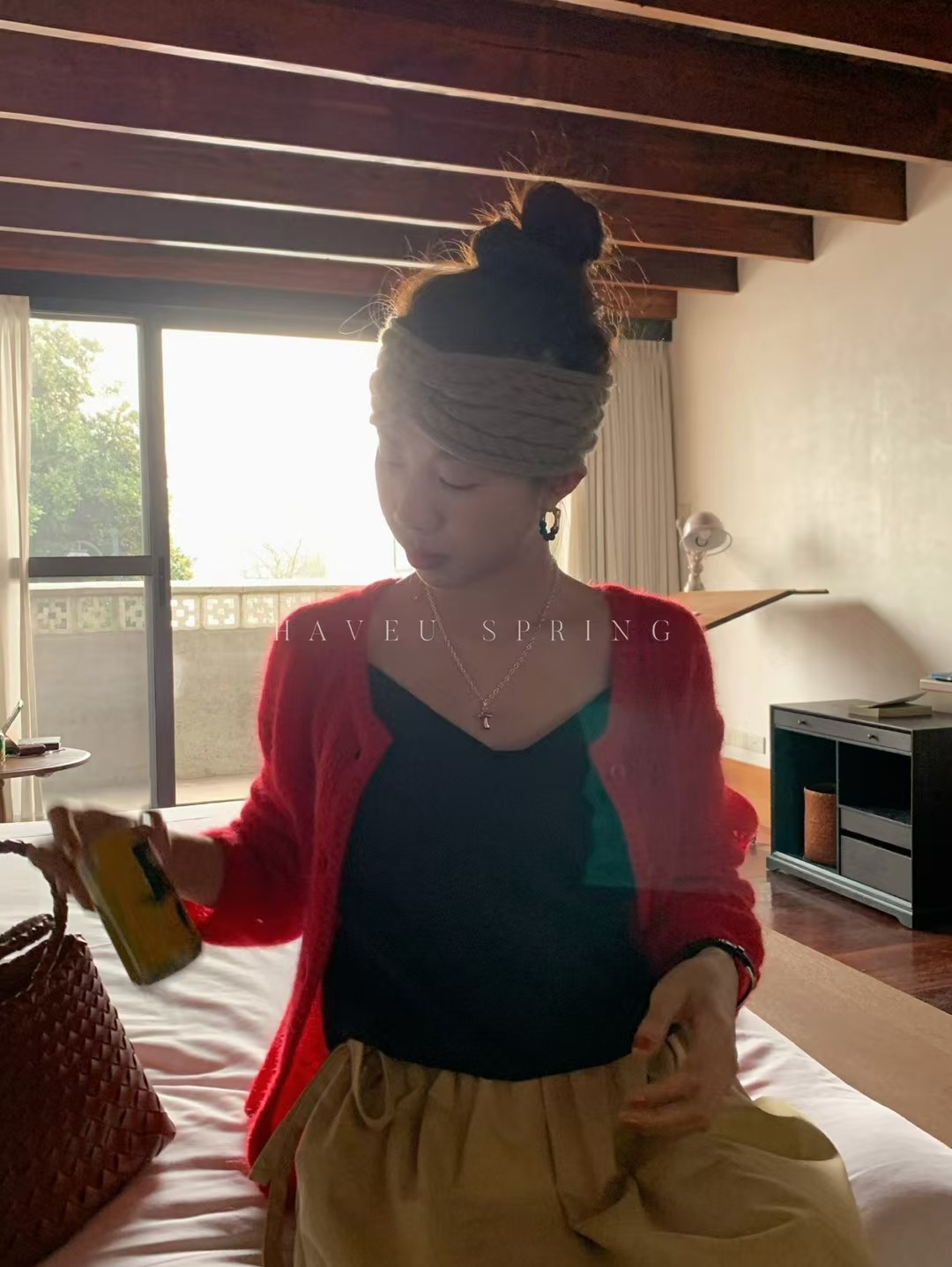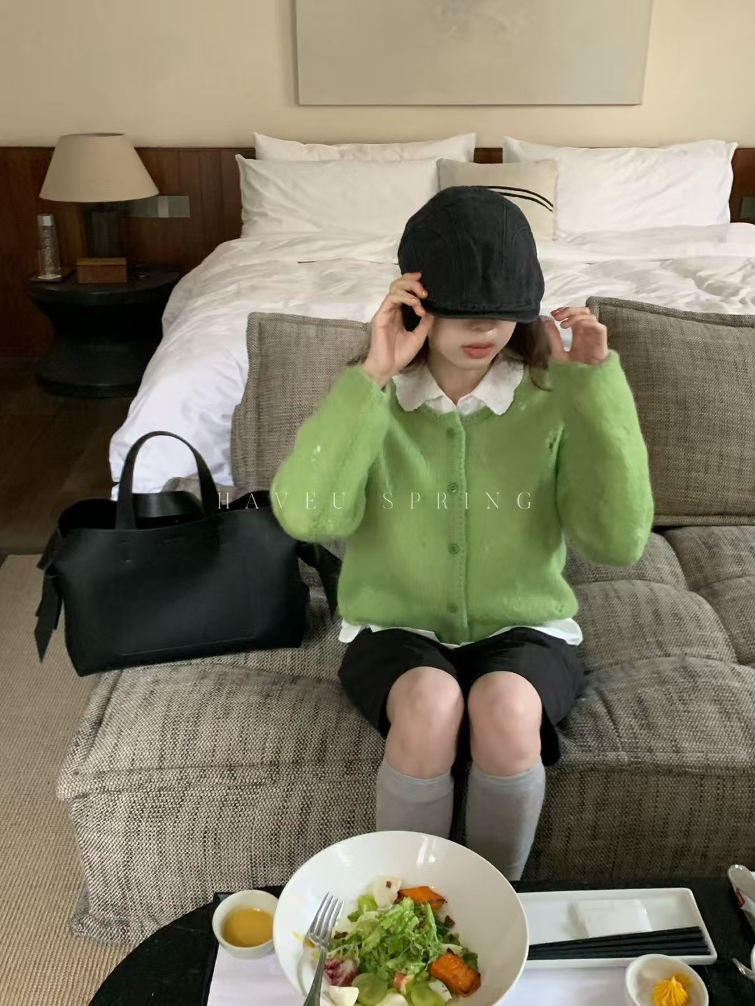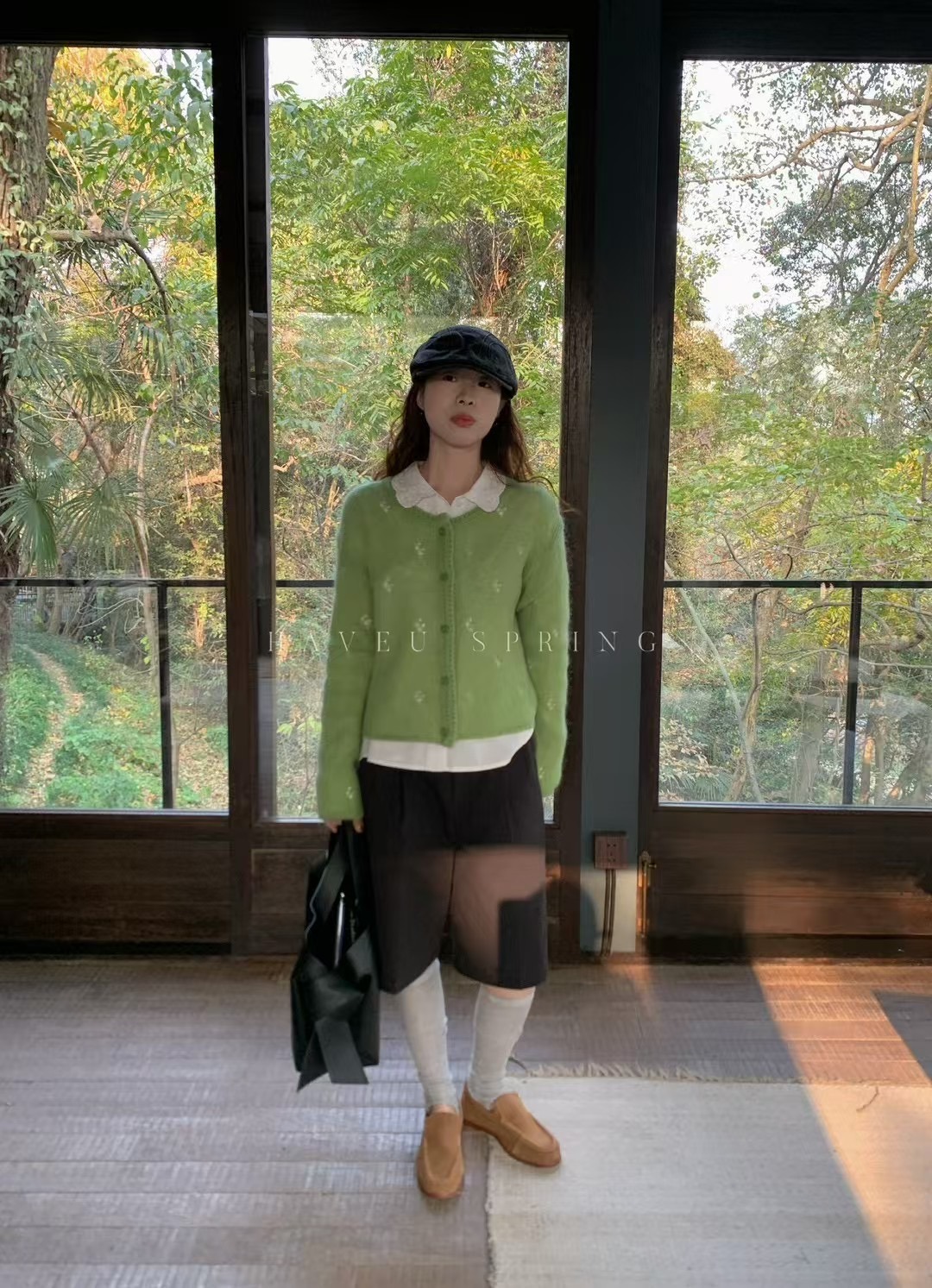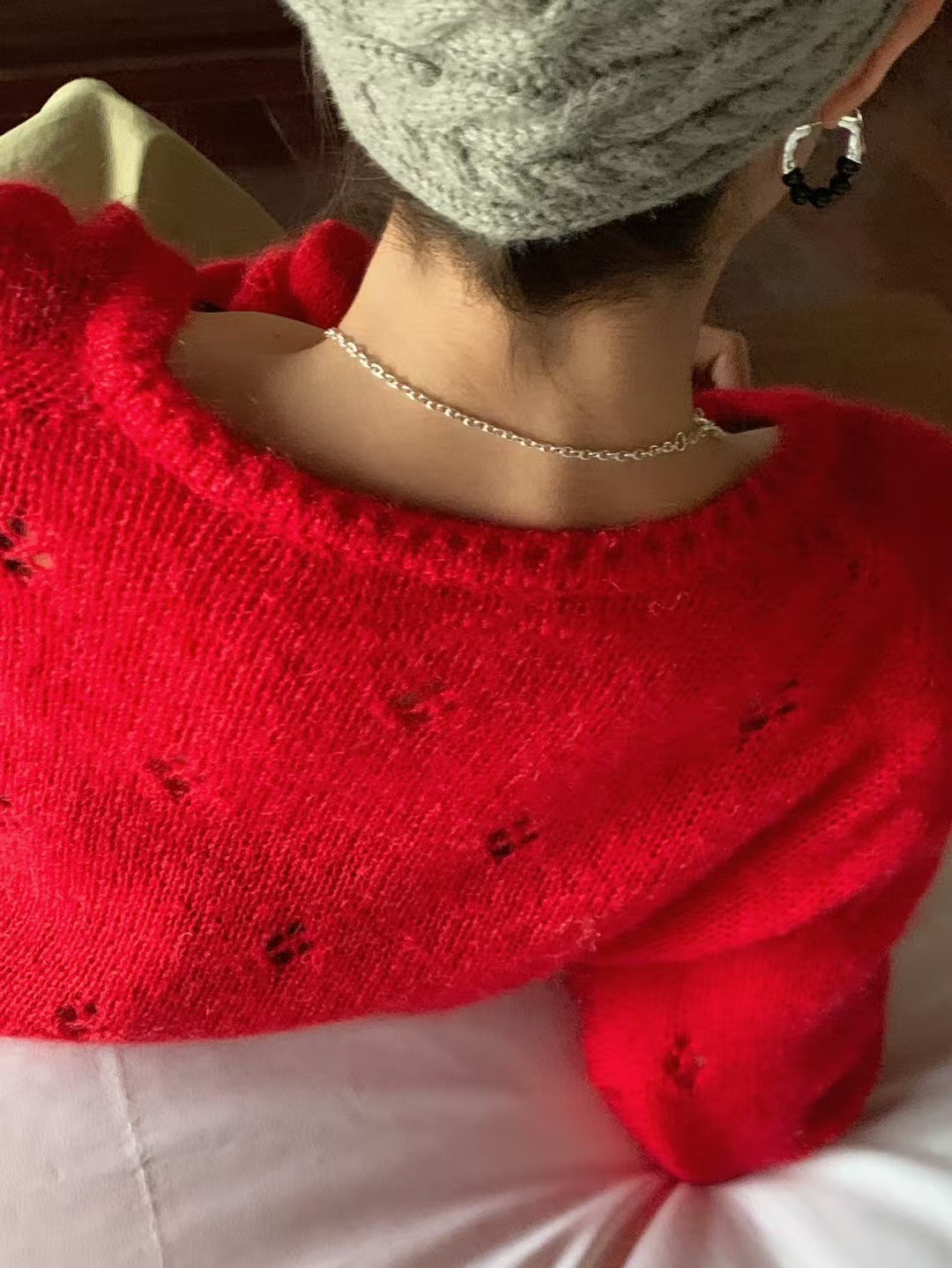 한국식 모헤어 라운드 넥 할로우 니트 카디건 여성의 봄 새로운 디자인 센스 아우터 쇼트 코트 얇은 탑스토어 가기