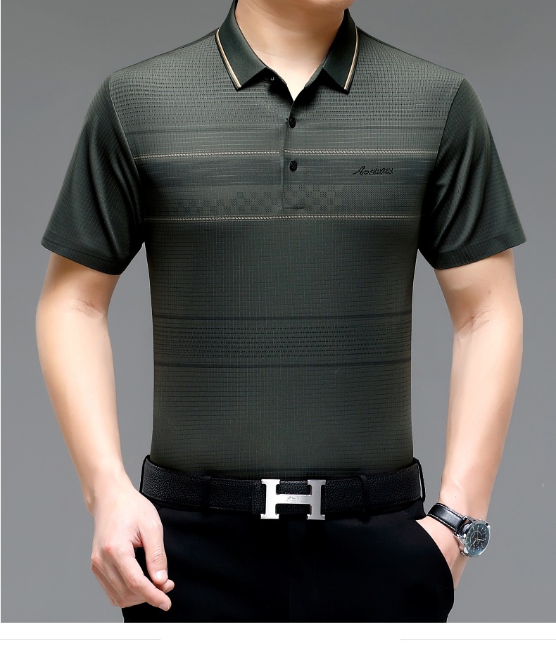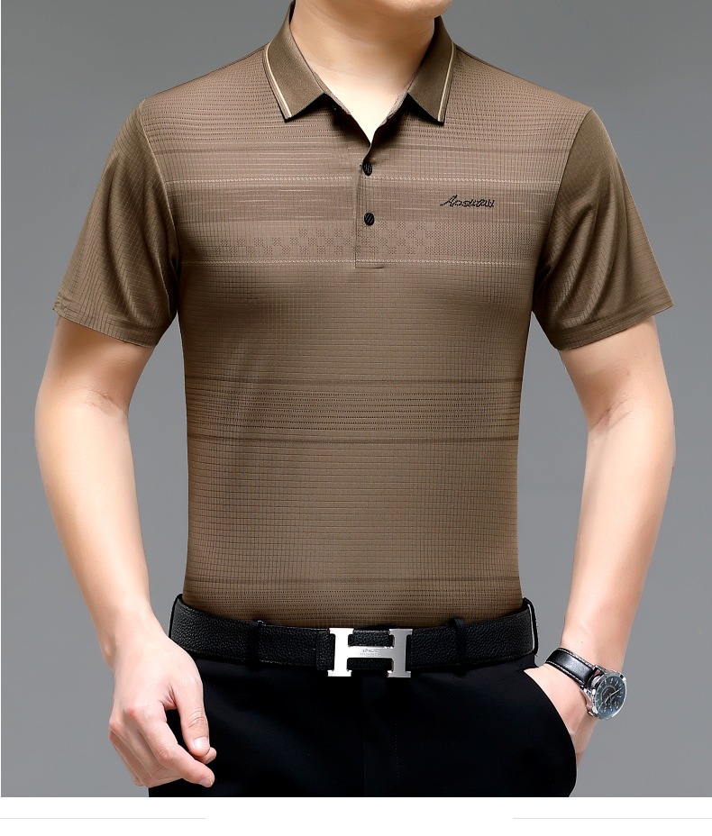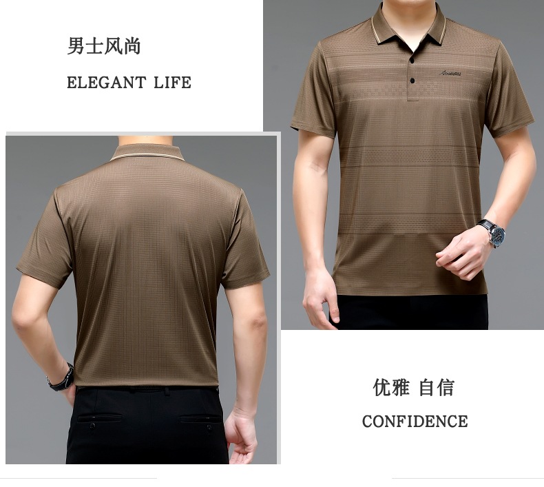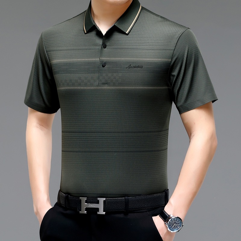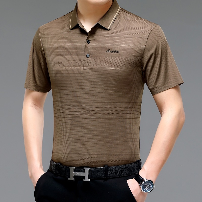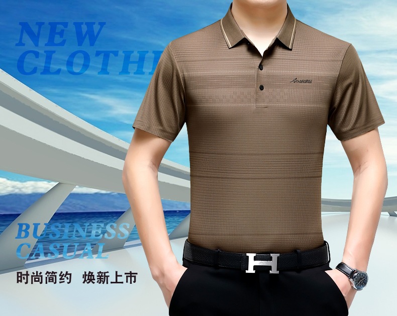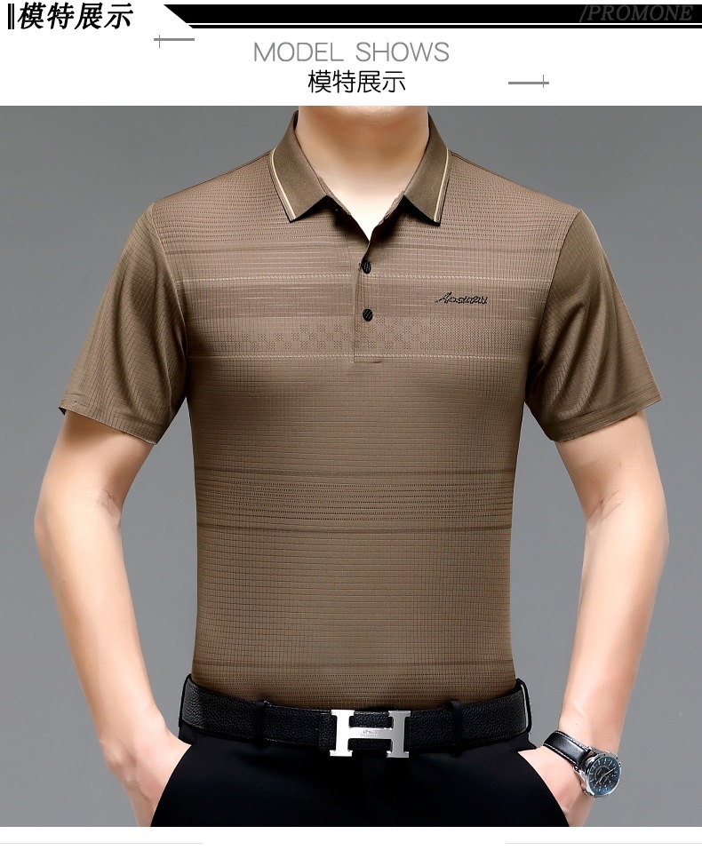 도매 카운터 고급 중년 및 노인 비즈니스 캐주얼 최고 남성 뽕나무 실크 여름 비 다림질 반팔 폴로 셔츠스토어 가기