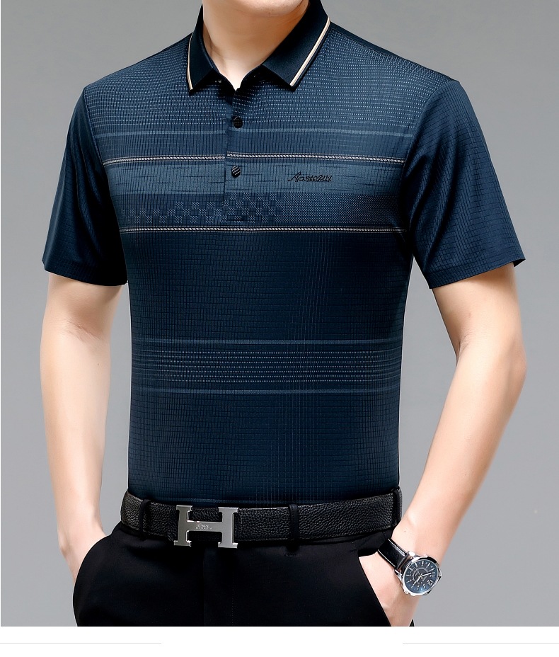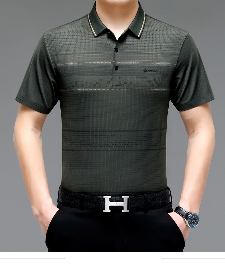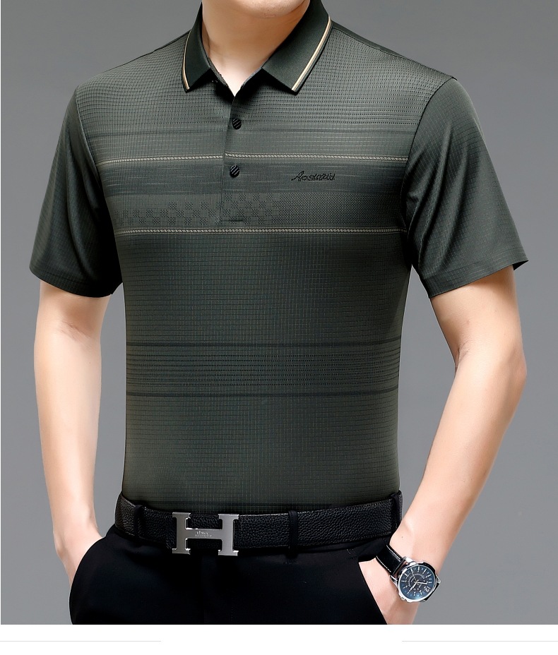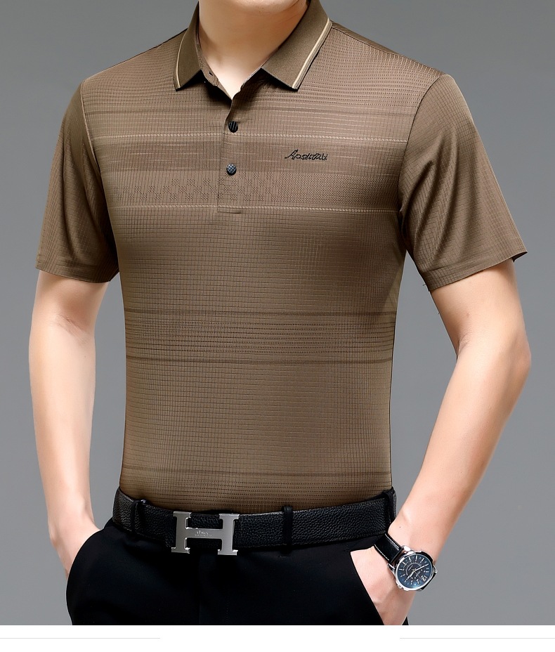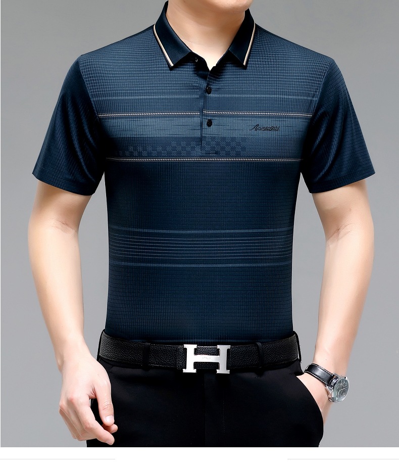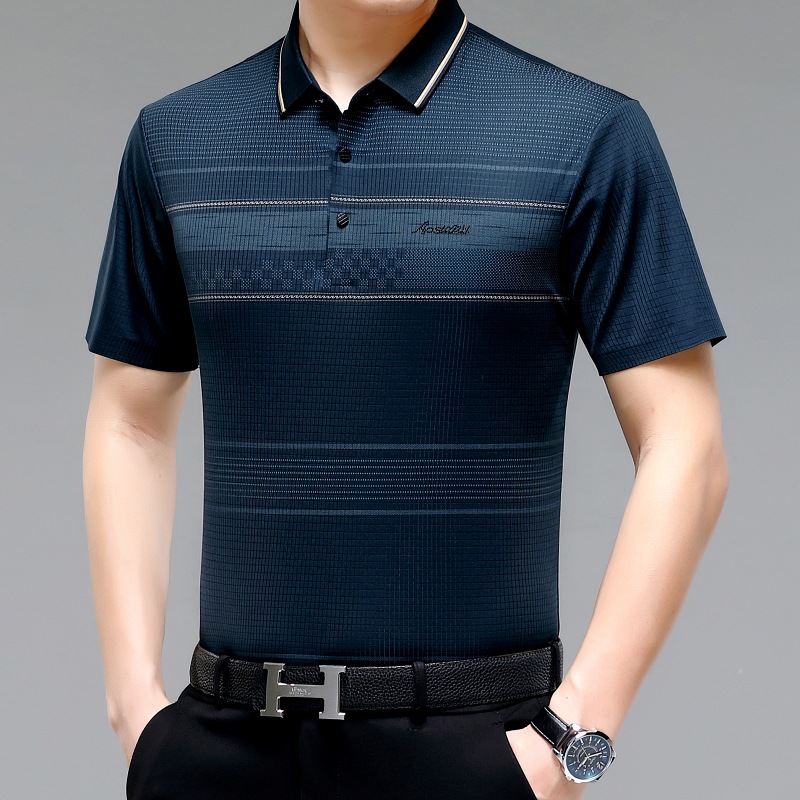 도매 카운터 고급 중년 및 노인 비즈니스 캐주얼 최고 남성 뽕나무 실크 여름 비 다림질 반팔 폴로 셔츠스토어 가기