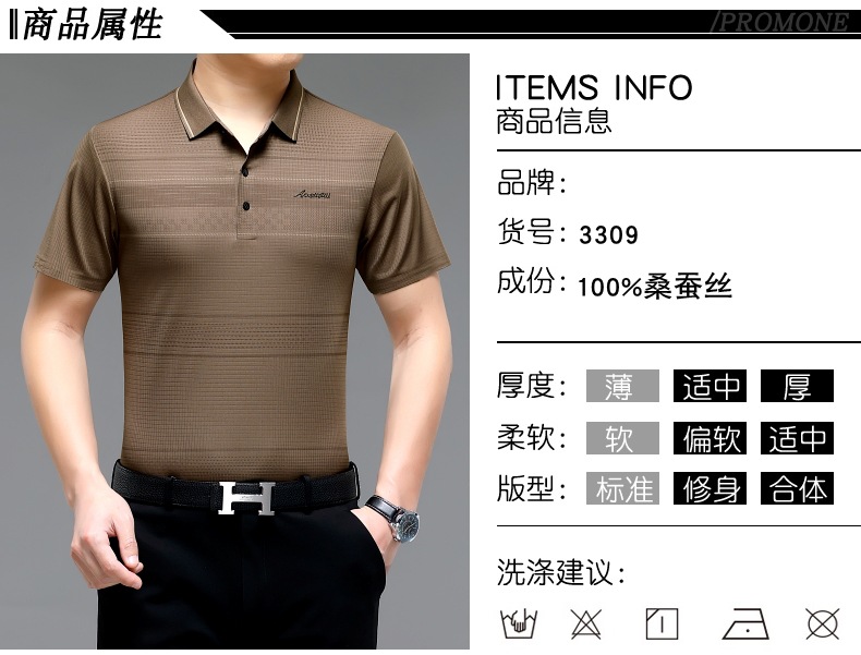 도매 카운터 고급 중년 및 노인 비즈니스 캐주얼 최고 남성 뽕나무 실크 여름 비 다림질 반팔 폴로 셔츠