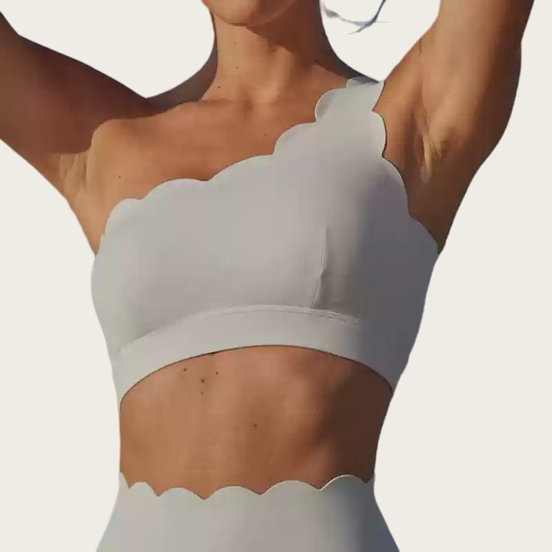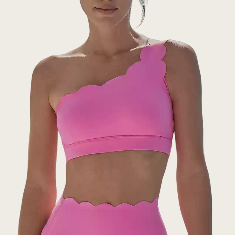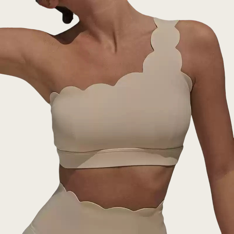 ✞ 개성 있는 아이템~ 탈부착 가능한 어깨끈, 컵이 있는 여성용 스포츠 브라, 충격 방지, 푸쉬업, 요가 브라, 밑단에 추가 디테일