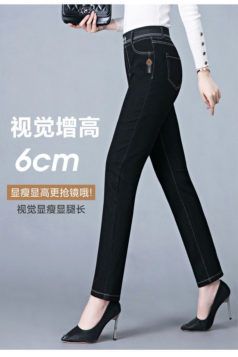 신축성있는 허리 청바지 여성의 직선 다리 봄과 가을 새로운 45 세 어머니 바지 높은 허리 느슨한 중년 여성 바지스토어 가기