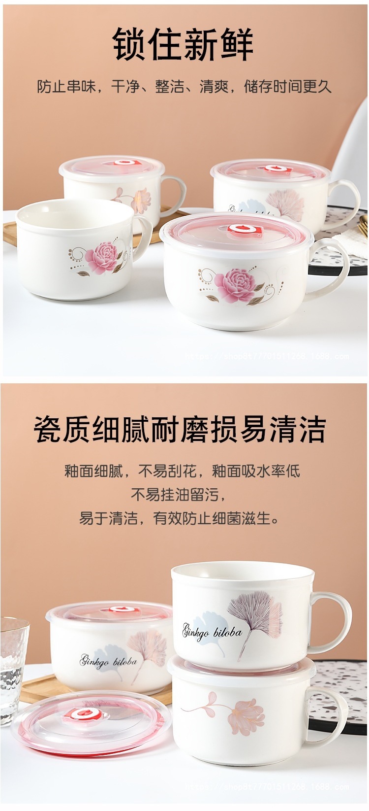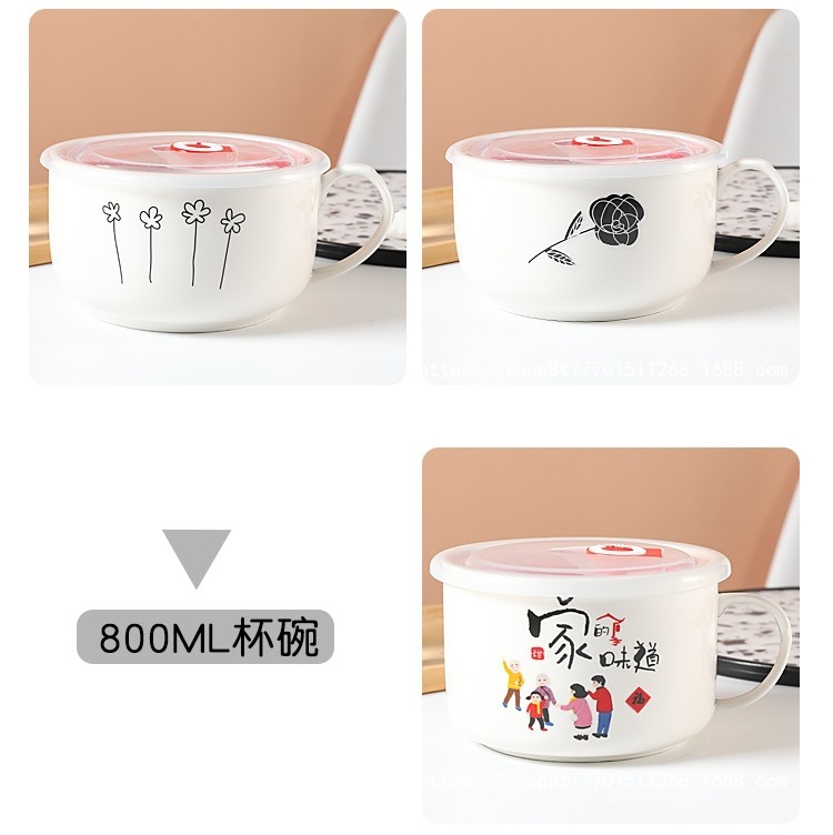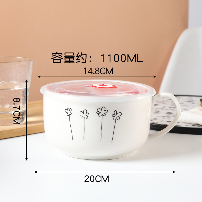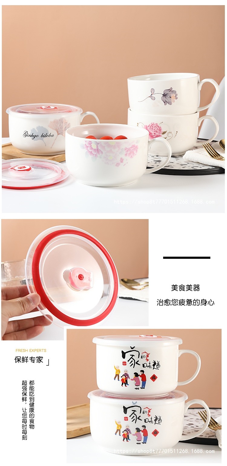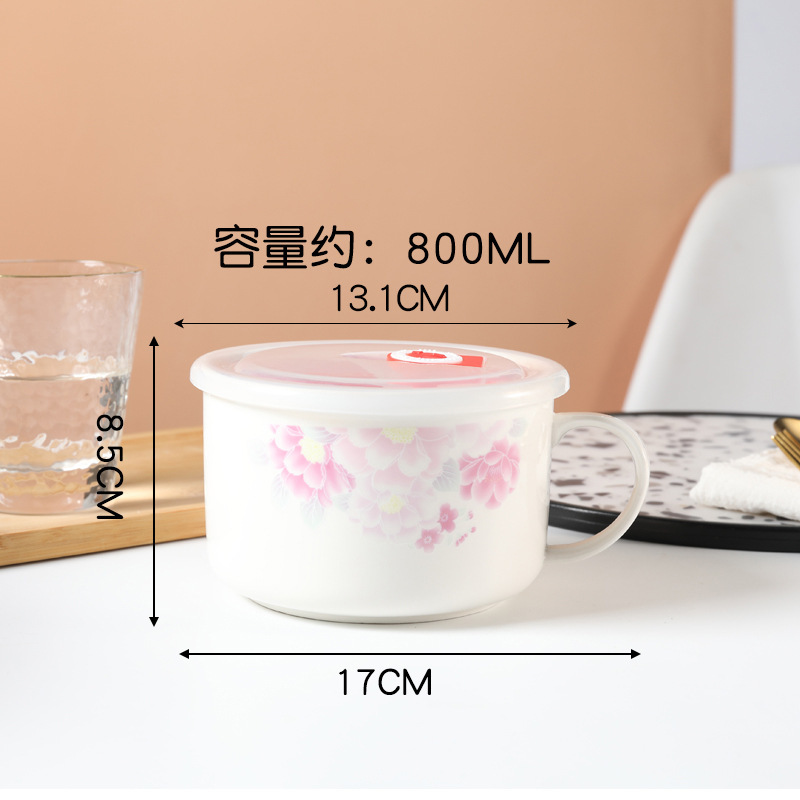세라믹 인스턴트 국수 보울 라이스 보울 뚜껑 및 손잡이 신선한 보울 즉석 국수 보울 벤토 박스 수프 그릇 전자 레인지 용