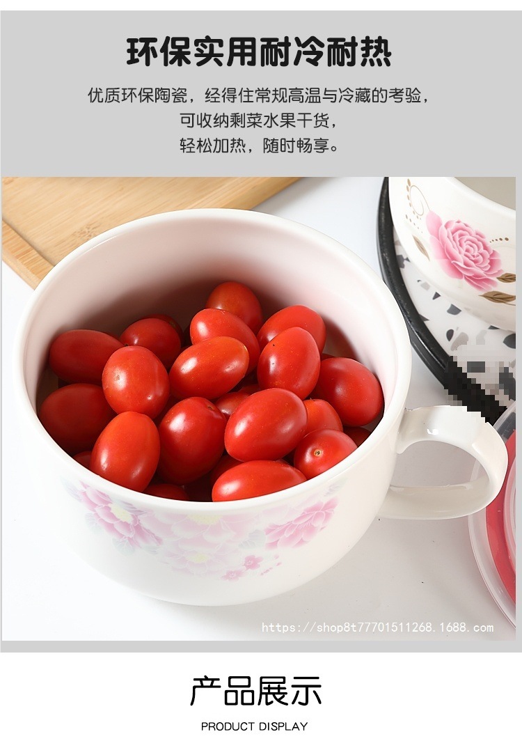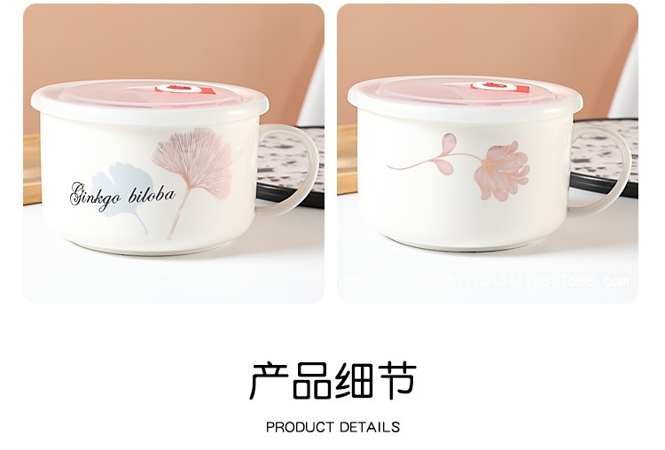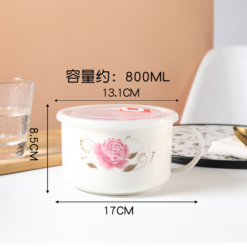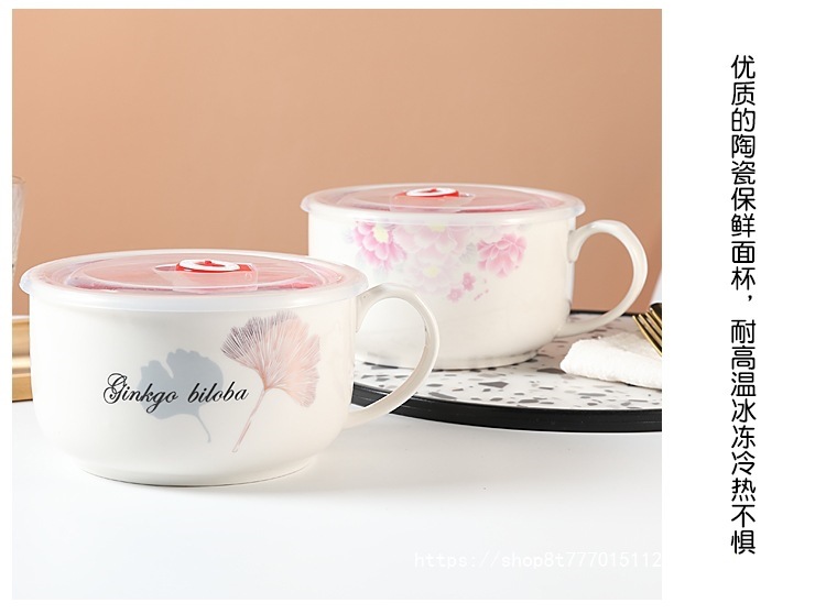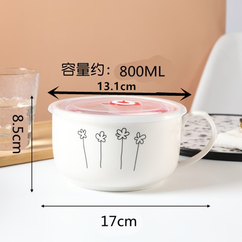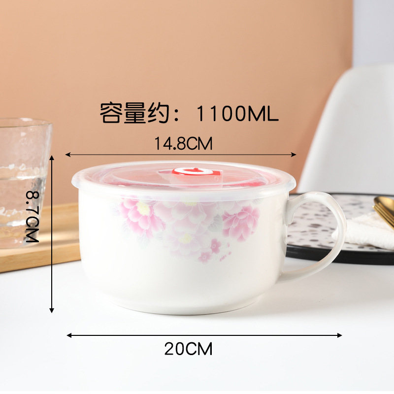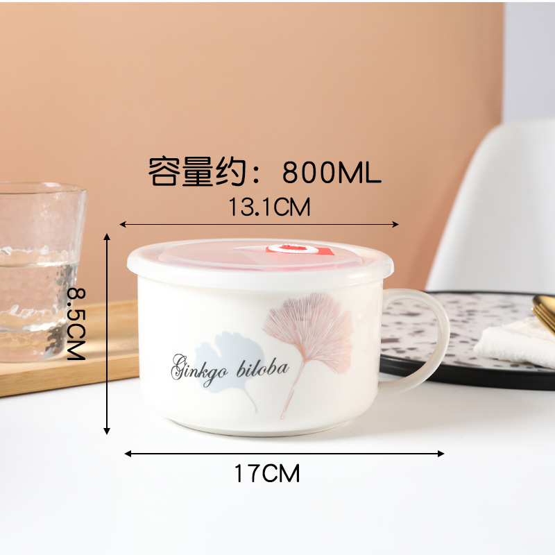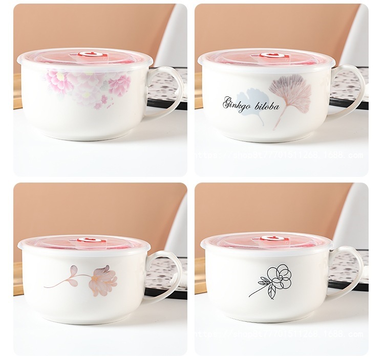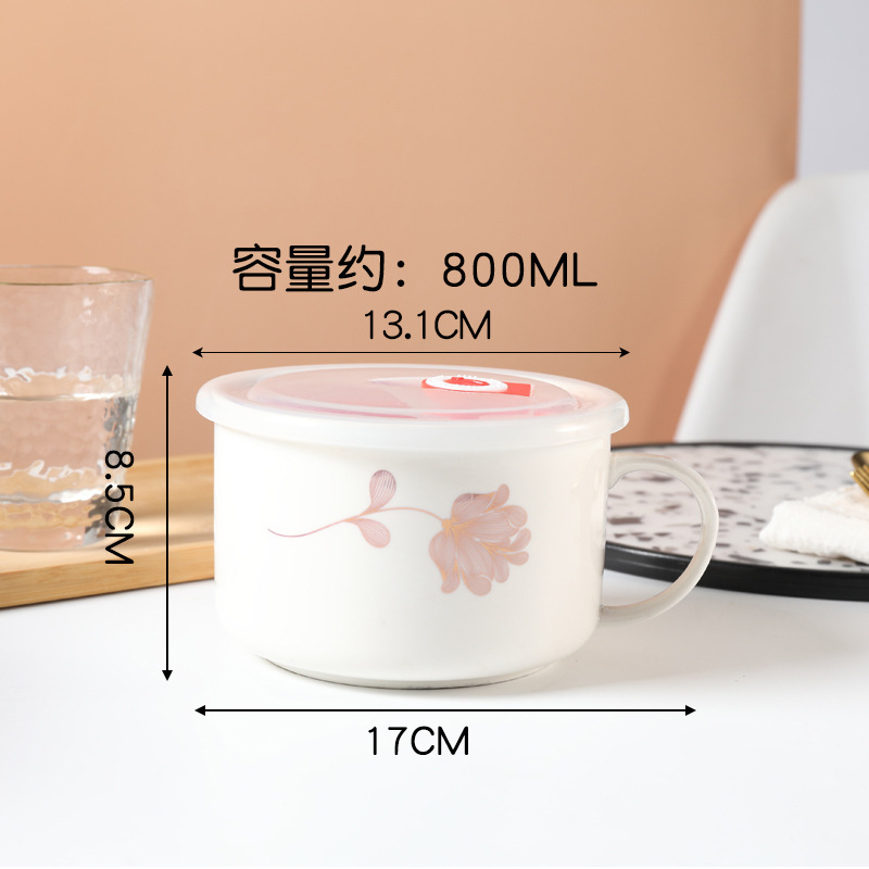 세라믹 인스턴트 국수 보울 라이스 보울 뚜껑 및 손잡이 신선한 보울 즉석 국수 보울 벤토 박스 수프 그릇 전자 레인지 용