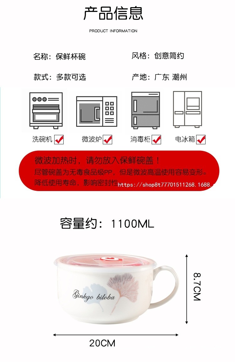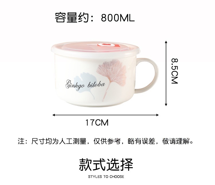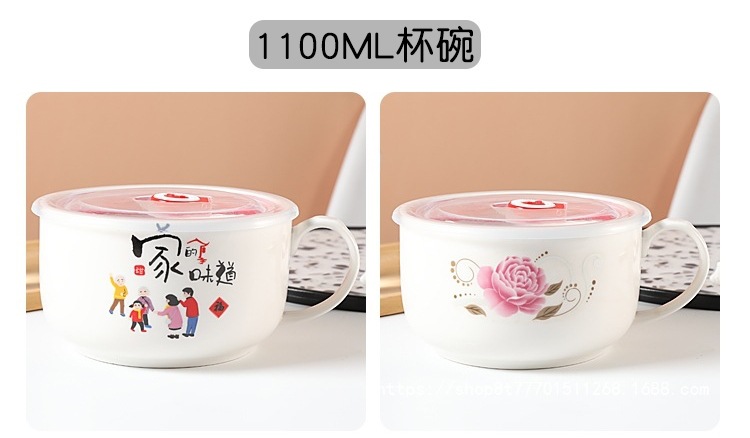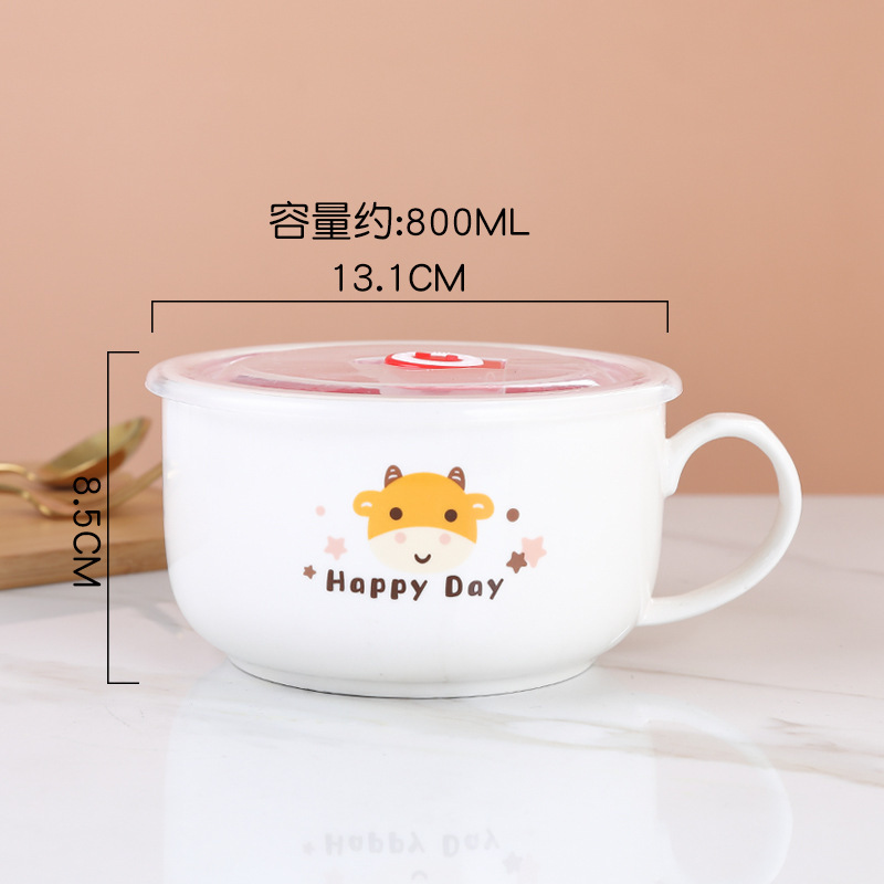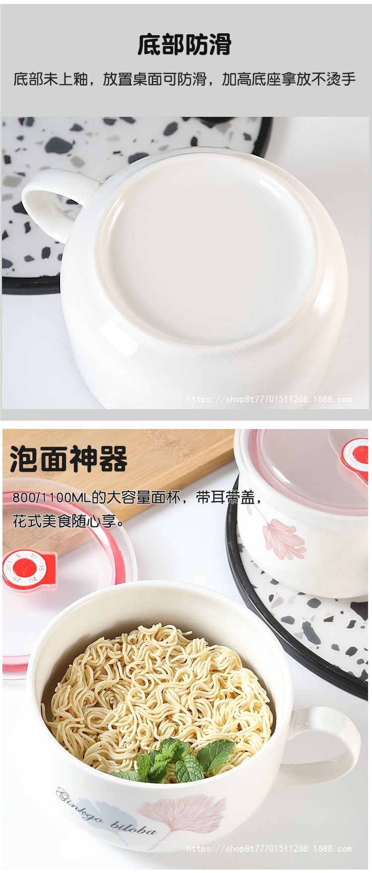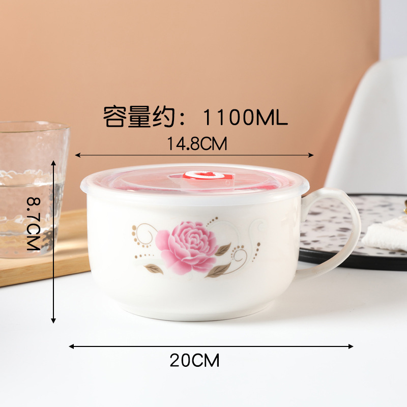 세라믹 인스턴트 국수 보울 라이스 보울 뚜껑 및 손잡이 신선한 보울 즉석 국수 보울 벤토 박스 수프 그릇 전자 레인지 용