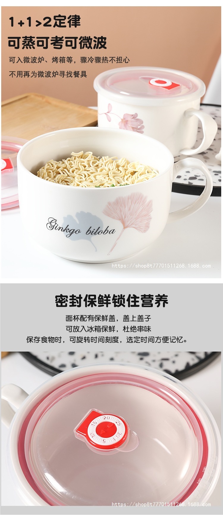 세라믹 인스턴트 국수 보울 라이스 보울 뚜껑 및 손잡이 신선한 보울 즉석 국수 보울 벤토 박스 수프 그릇 전자 레인지 용스토어 가기