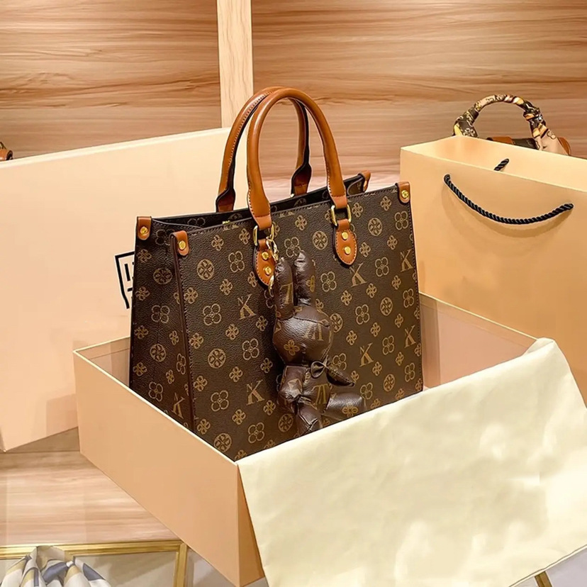 2025 새로운 패션 캐주얼 올 매치 토끼 펜던트 대용량 어머니 토트 백 휴대용 어깨 크로스 바디 백 트렌디스토어 가기