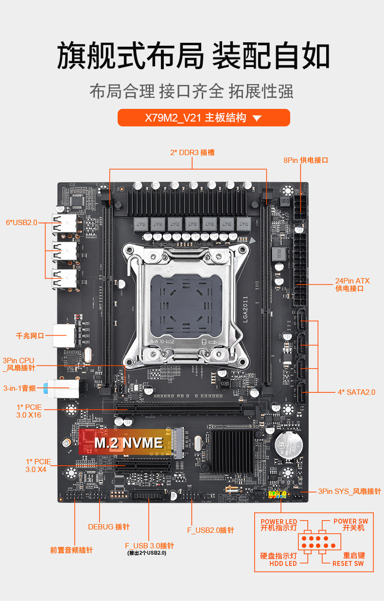 X79M2 컴퓨터 마더 보드 LGA-2011 프로세서 Материнская плата스토어 가기