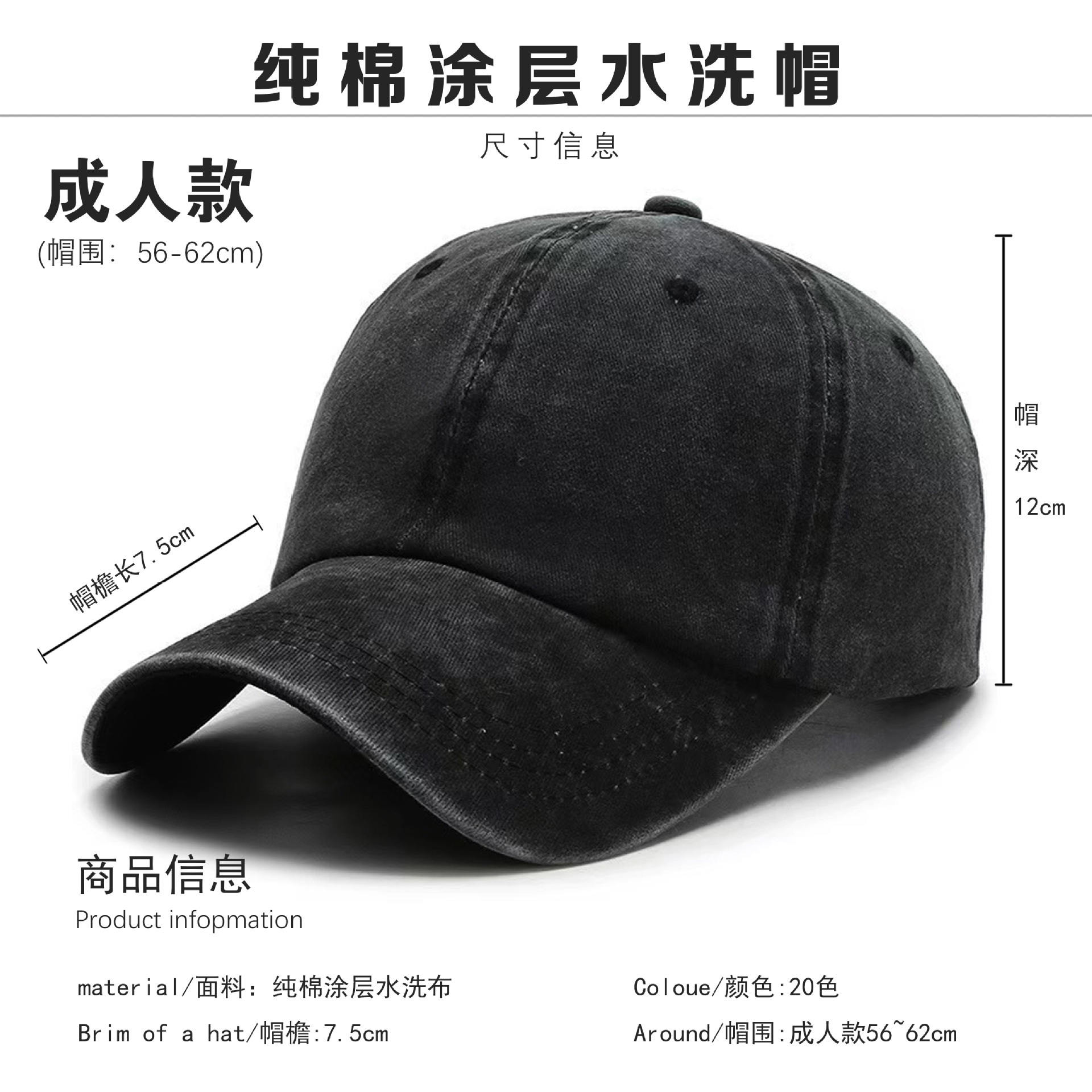 유럽과 미국의 세탁 가능한 모자 야구 모자 맞춤 로고 소프트 탑 캡 남녀 캐주얼 빈티지 자수 코팅 된 면화