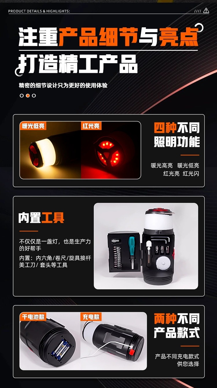 공장 직접 공급 야외 COB 태양 휴대용 램프 태양 충전 캠핑 램프 여행 텐트 조명