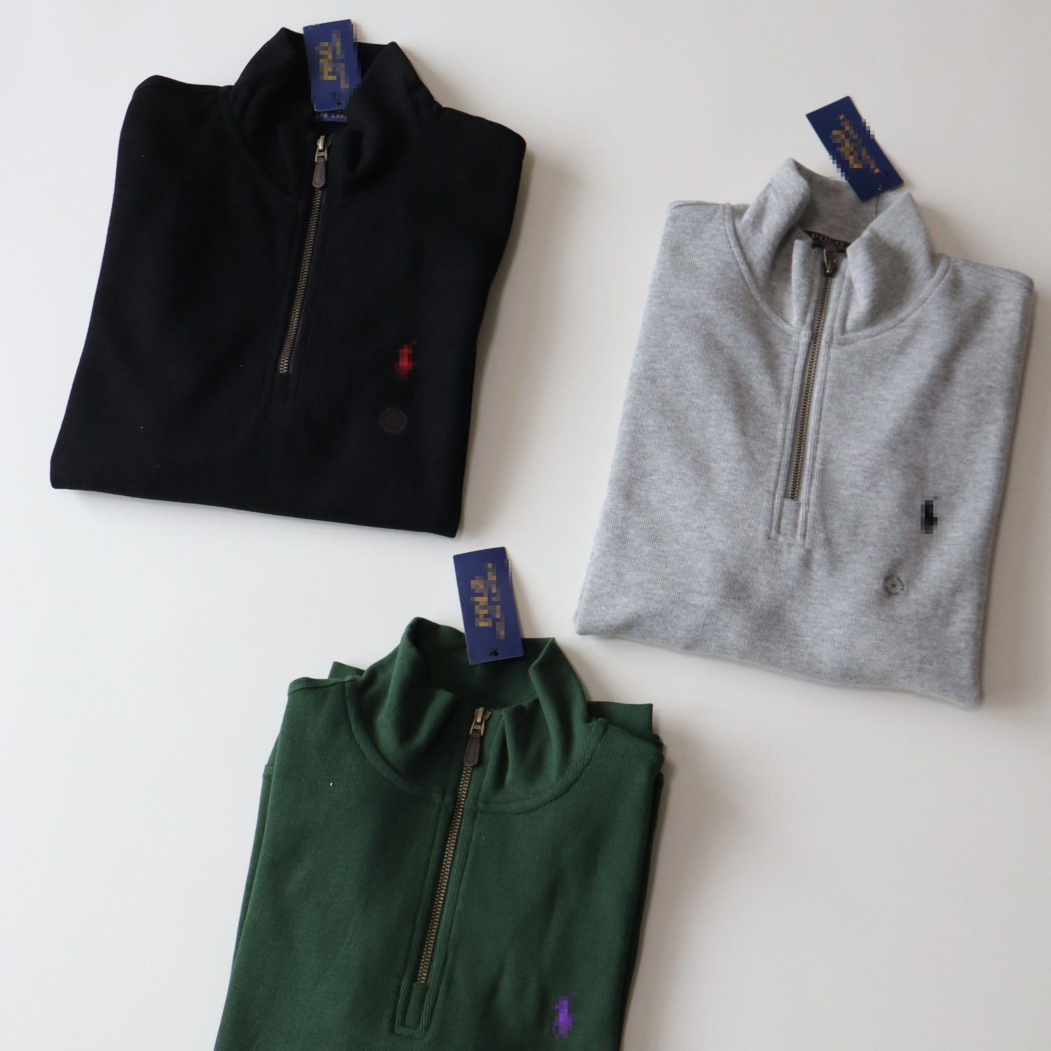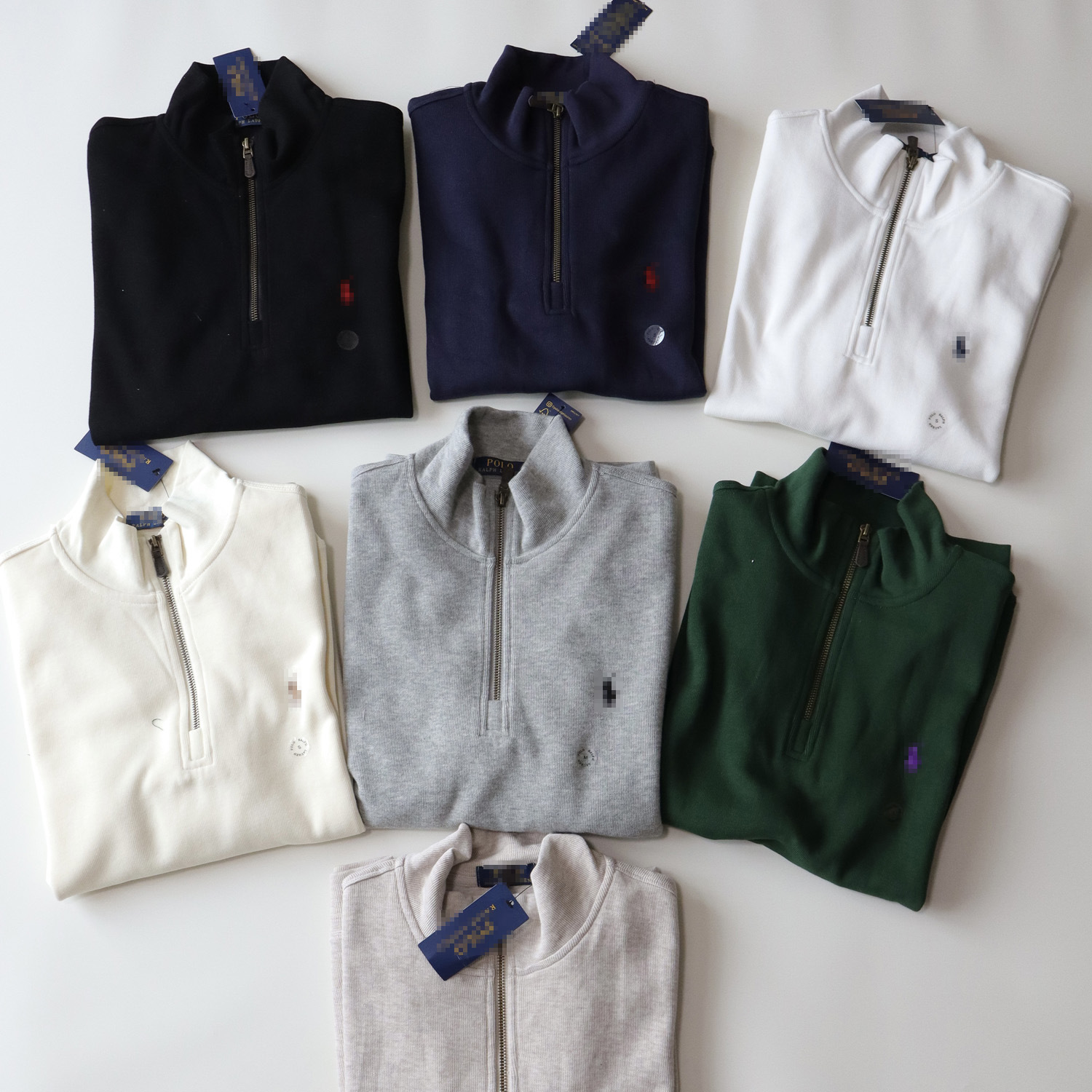 크로스보더 공급 RL 단색 포니 로고 자수 하프 지퍼 풀오버 하이넥 긴팔 니트 스웨트셔츠 남녀공용스토어 가기