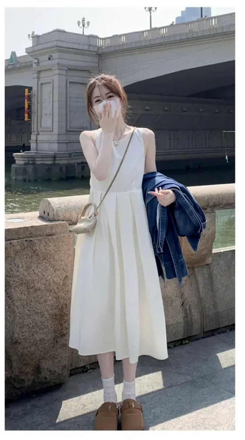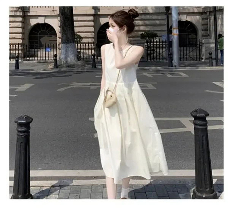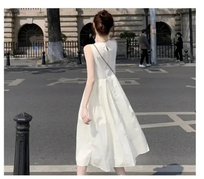 프랑스 틈새 한국 스타일 민소매 조끼 화이트 원피스 여름 여성의 2024 새로운 스타일 작은 긴 원피스스토어 가기