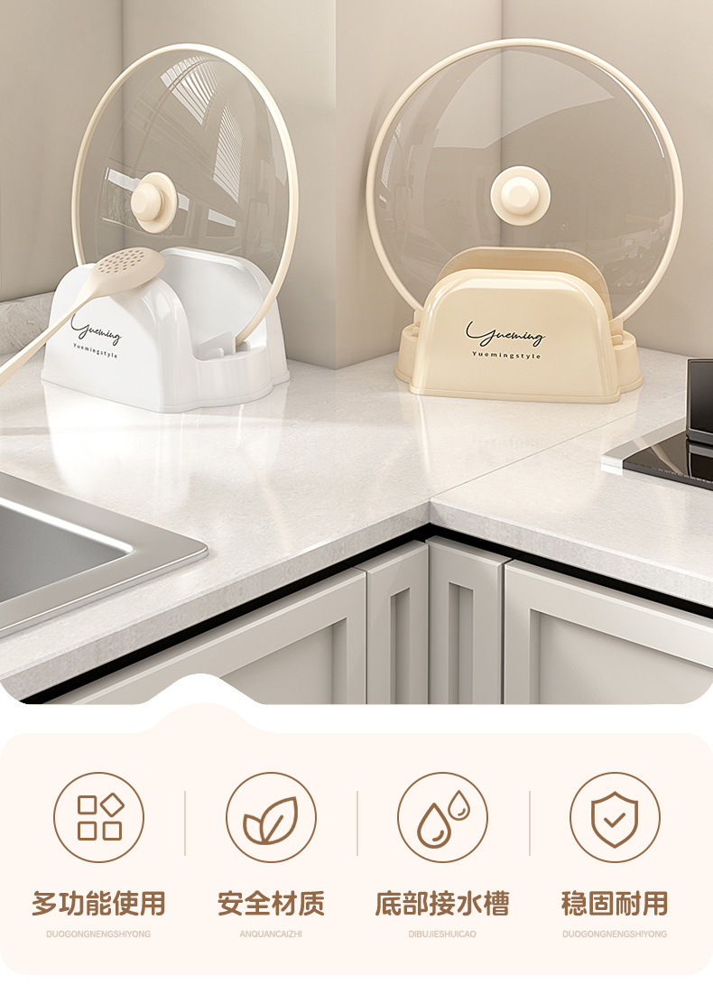 크림 스타일 냄비 커버 랙 냄비 삽 랙 통합 스토리지 랙 주방 스토브 스토리지 랙 그리기 도구 젓가락 스푼 랙