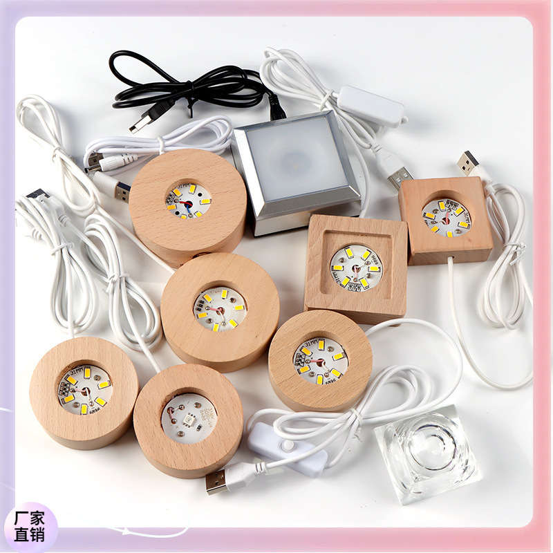 ✅창조적 인 크리스탈 볼베이스 3D 레이저 조각 라운드 크리스탈 빛나는 단단한 나무 램프 홀더 USB 인터페이스 밤