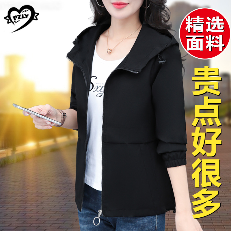 두건드 충전 재킷 여성의 봄과 가을 2025 새로운 중년 엄마 봄 연령 감소 방풍 짧은 여성 자켓스토어 가기