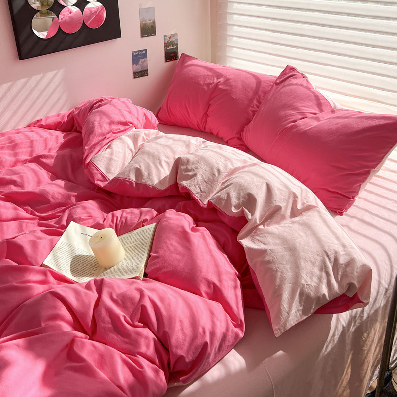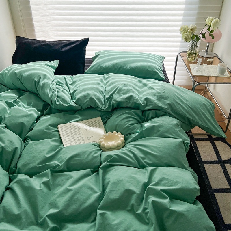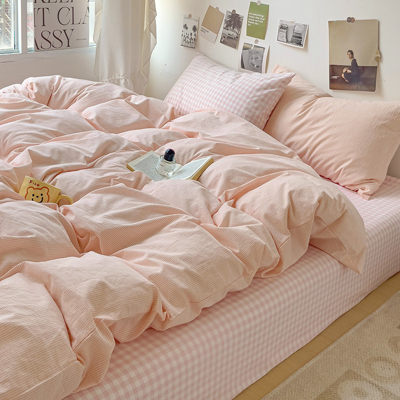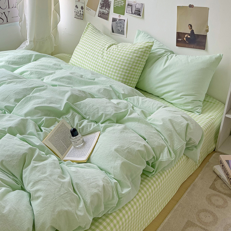 Ins 씻은 코튼 컬러 침대 4 피스 침구 간단한 격자 무늬 퀼트 커버 남성과 여성의 기숙사 침대 싱글 3 피스 세트