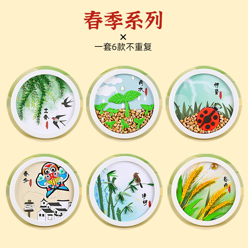 초등 학생을위한 비 유산 24 태양 용어 장식 그림 봄 큰 차가운 재료 패키지 활동의 시작스토어 가기