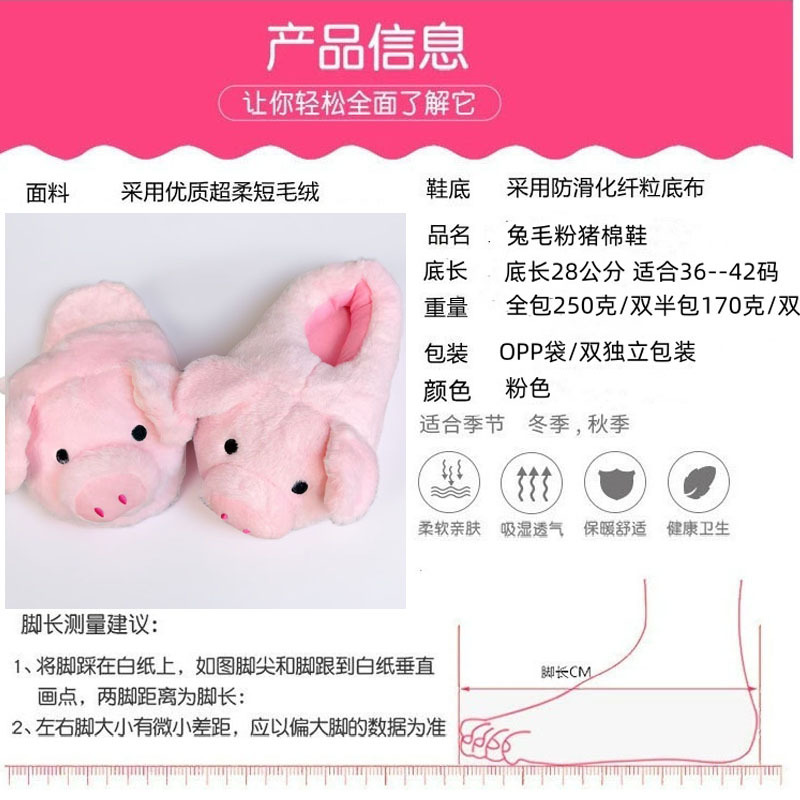 공장 직접 귀여운 핑크 돼지 머리 슬리퍼 홈 만화 두꺼운 따뜻한 미끄럼 방지 국경 뜨거운 면화 슬리퍼스토어 가기