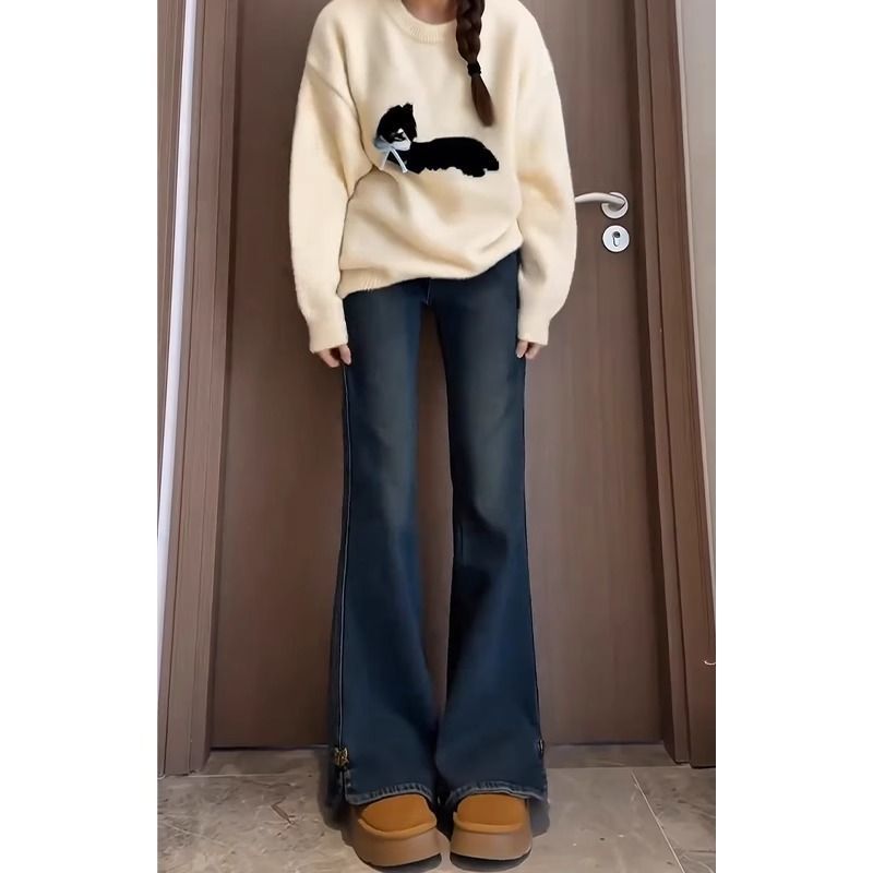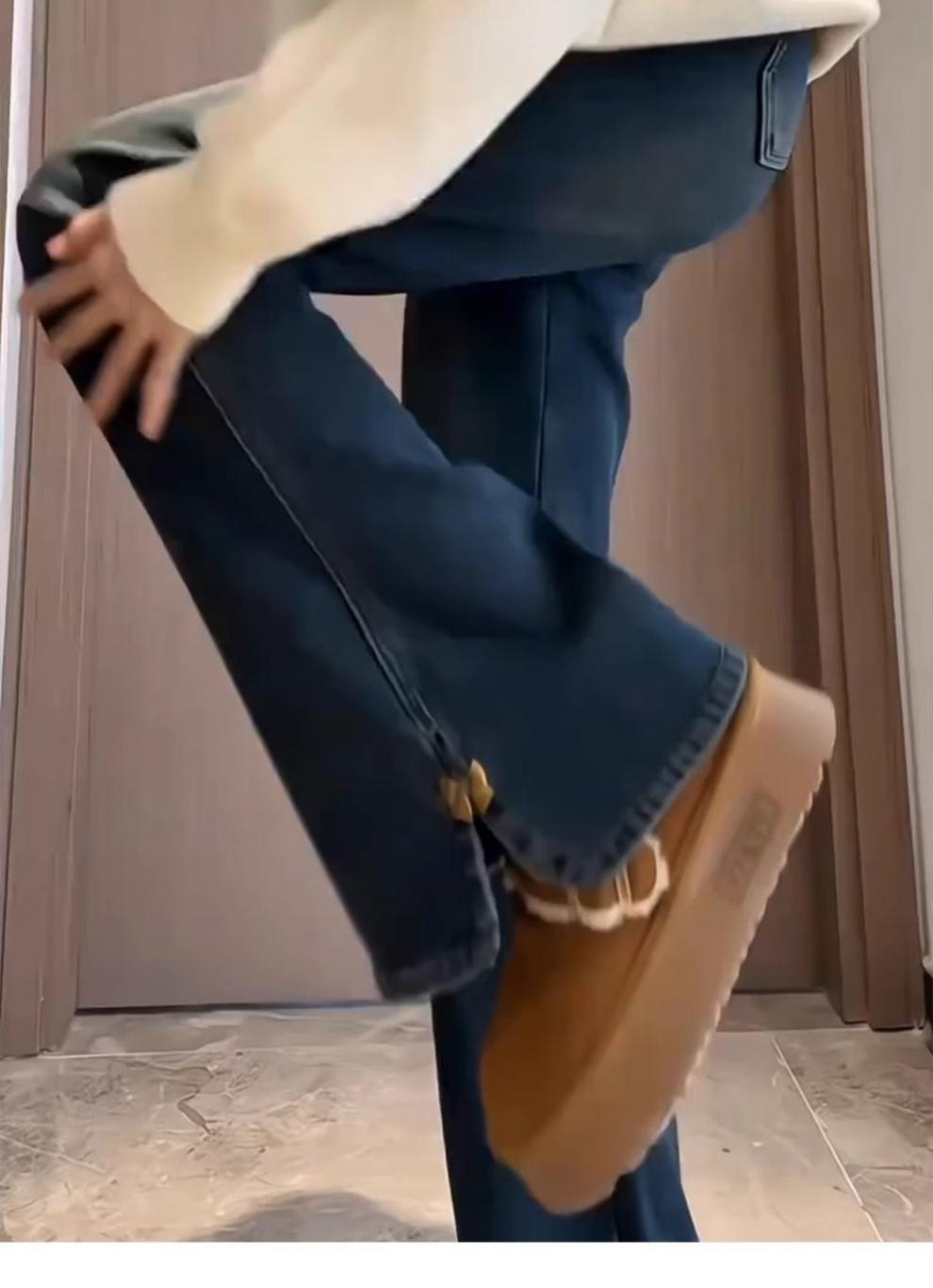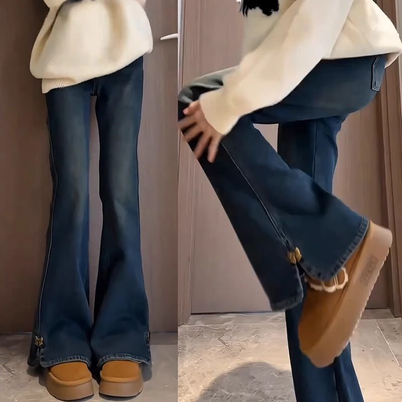 빈티지 스플릿 마이크로 라르 청바지 여성의 2025 새로운 작은 바지 통통녀 플러스 사이즈 슬림 플레어 바지스토어 가기