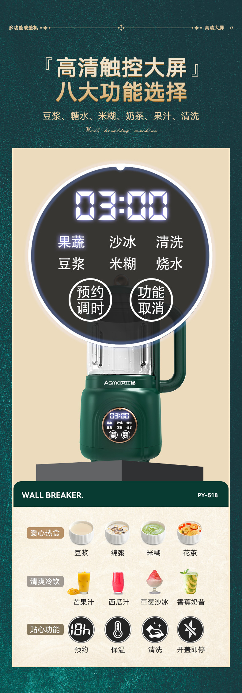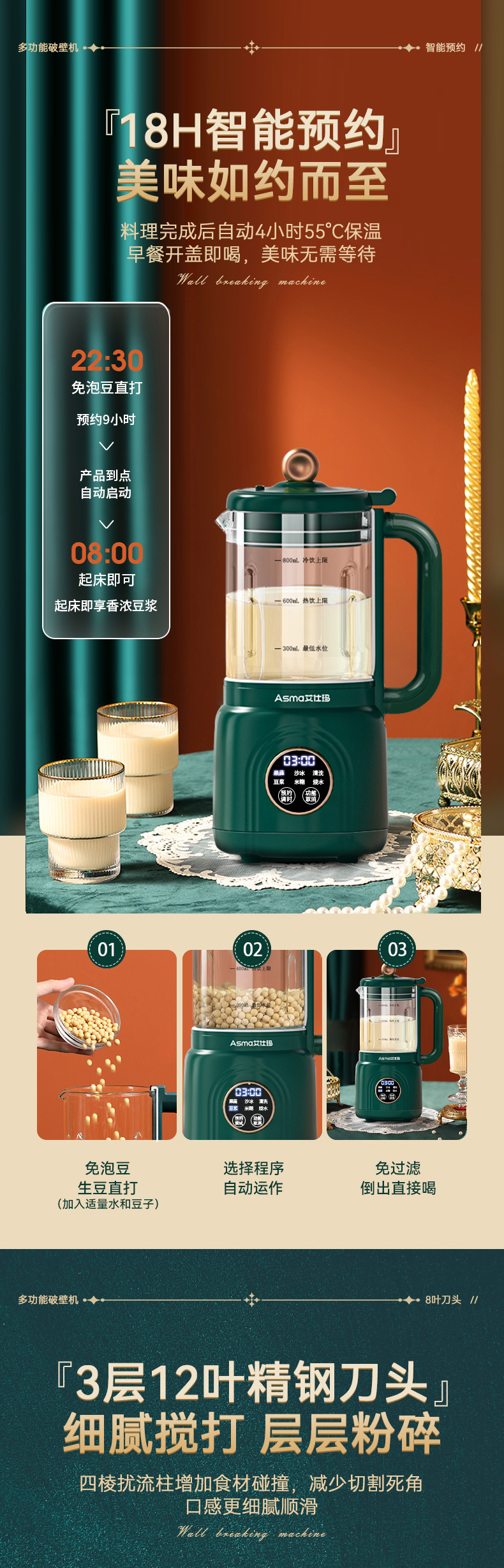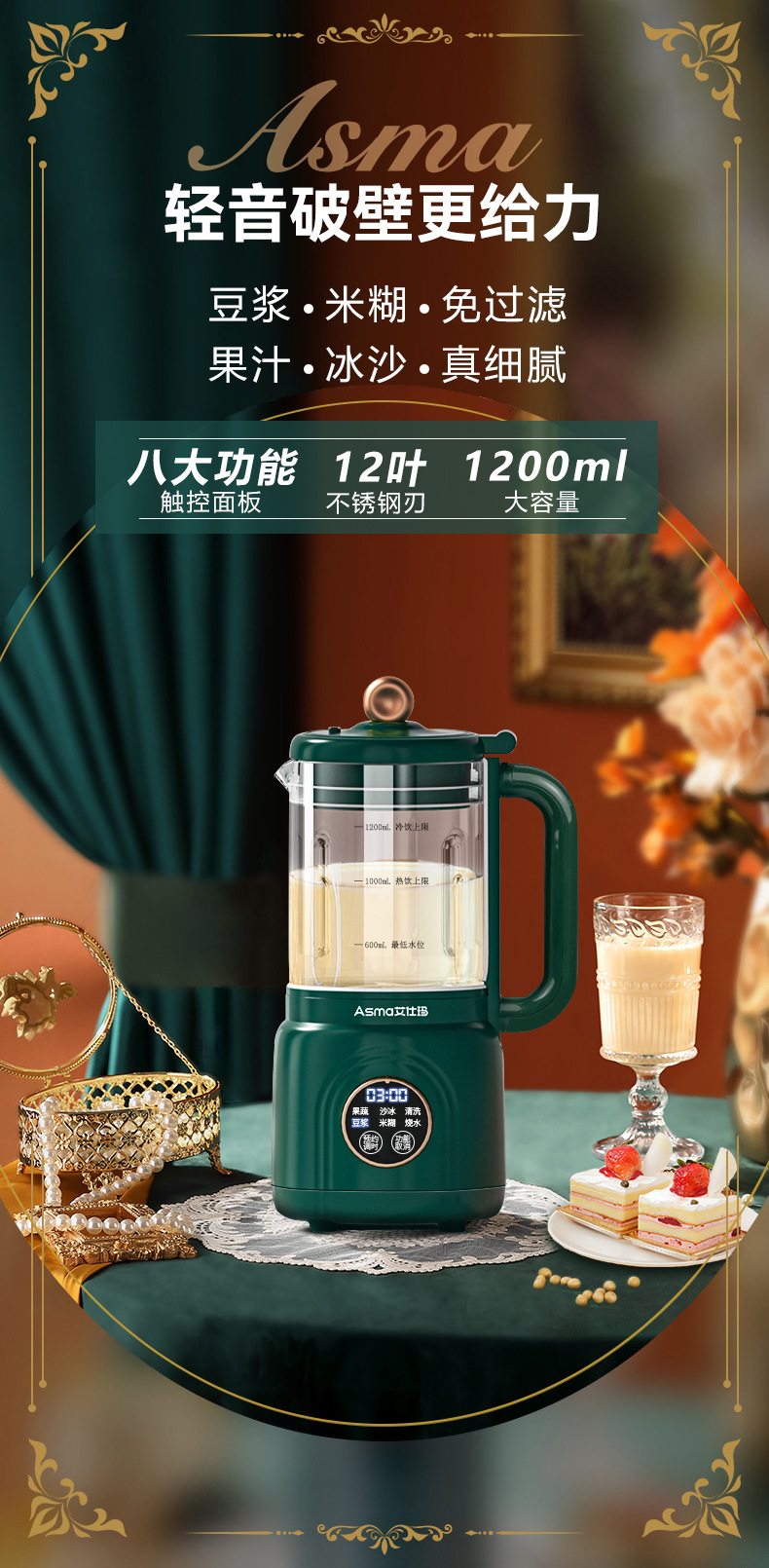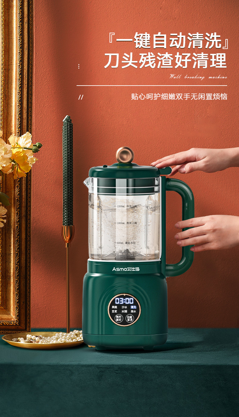 Ashma 난방 및 끓는 필터가없는 자동 다기능 고출력 주스 기계 벽 깨는 기계 가정용 대두 우유 기계